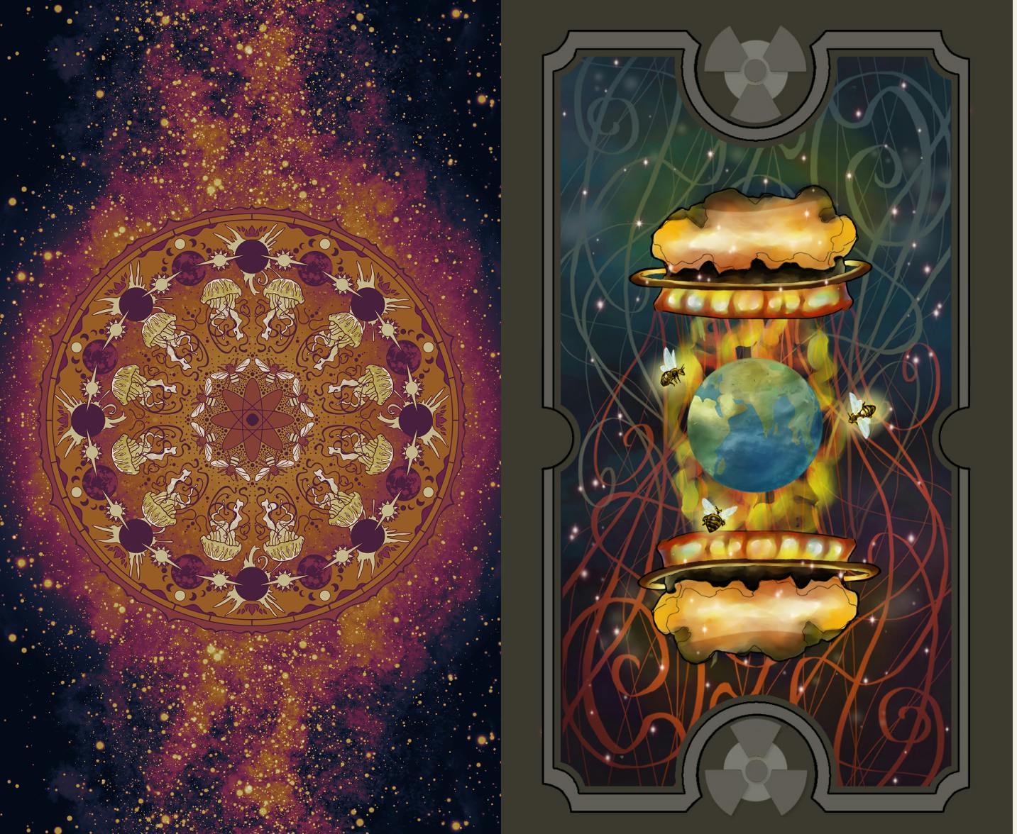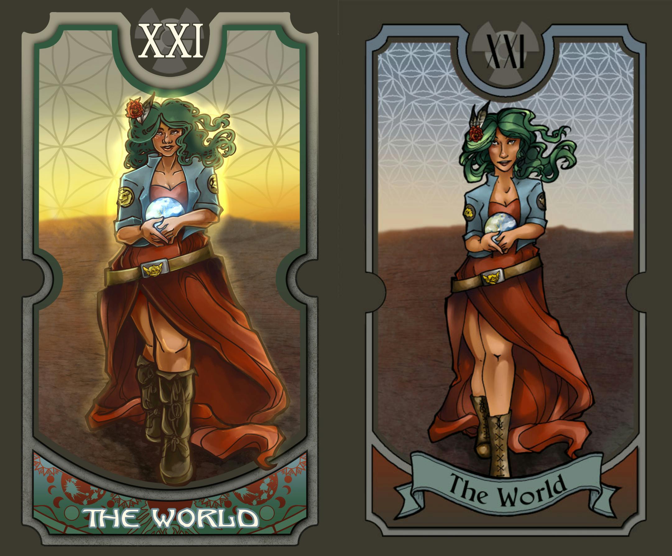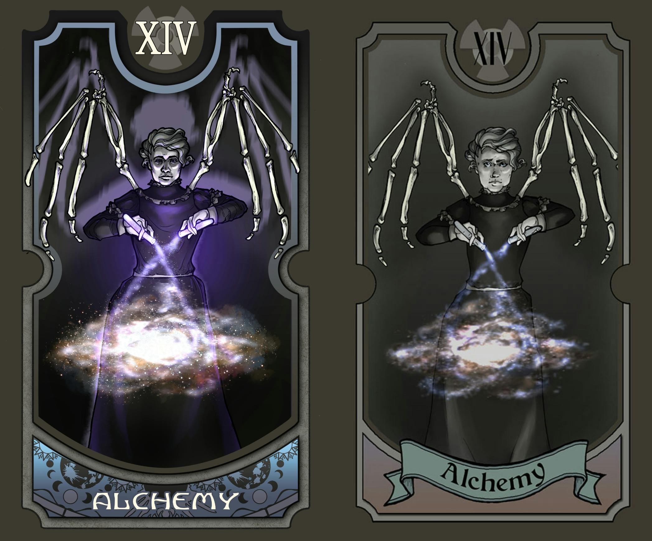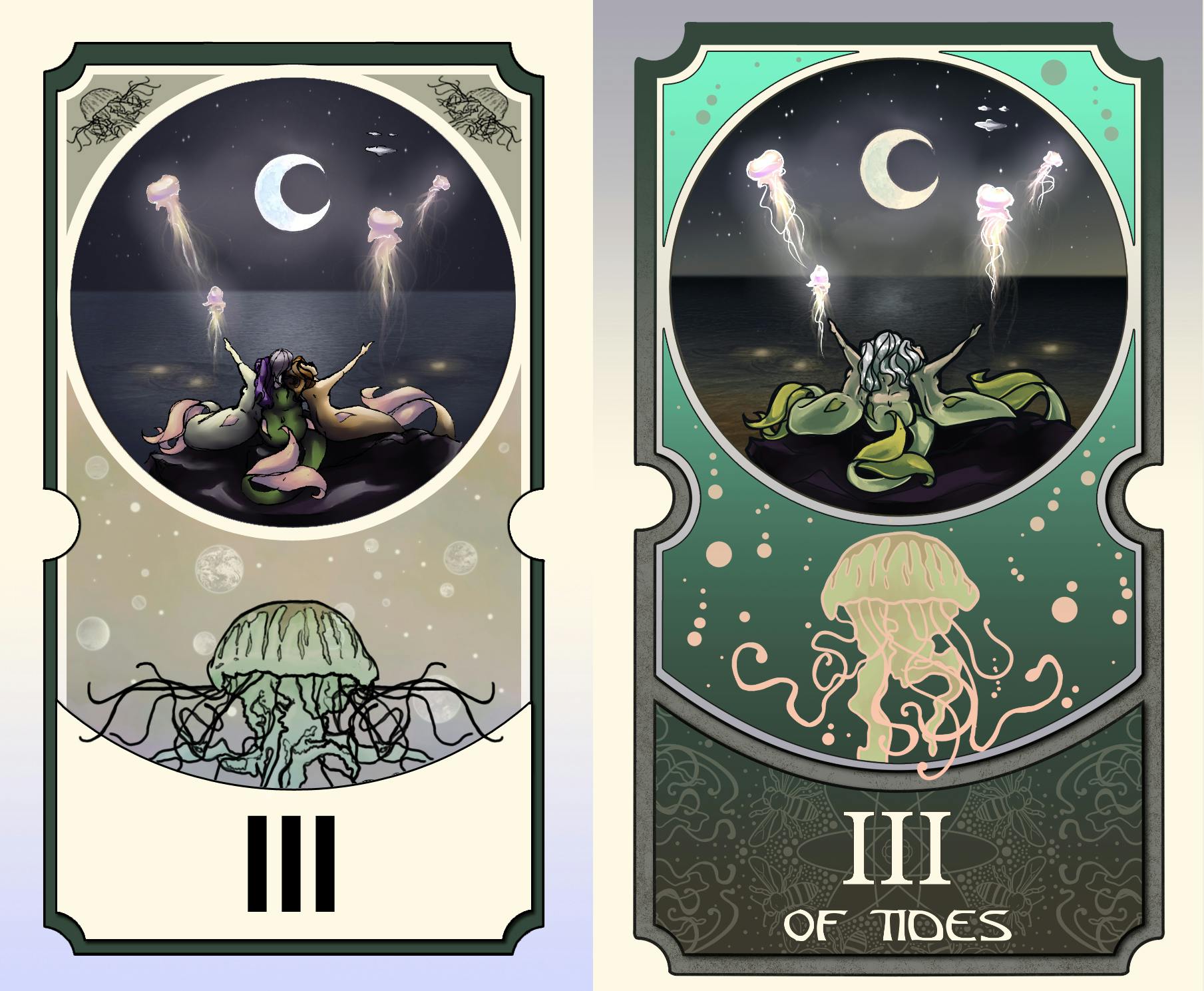 -Most changes were for clarity, whether in the art, the content, or the message of the card. For example, in the three of tides, the color choices make the forms unclear. The back was changed because we wanted a back that didn't reveal whether a card was upside down or not before it was turned over. Things like that.