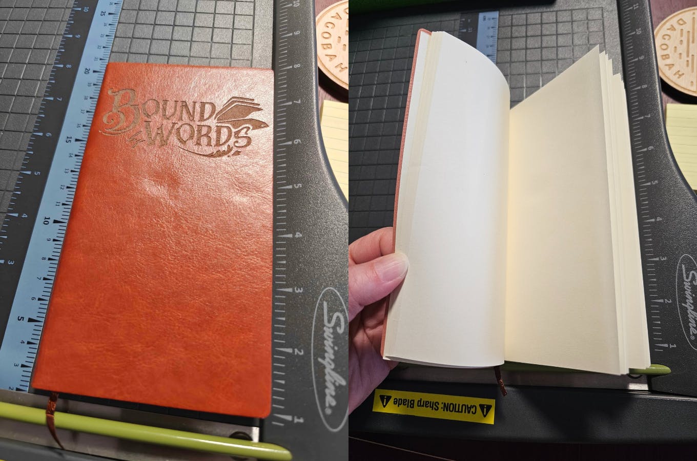 We've been experimenting with reward options we can produce locally and have one (1) laser-etched notebook with the Bound By Words logo to give away to a lucky backer.