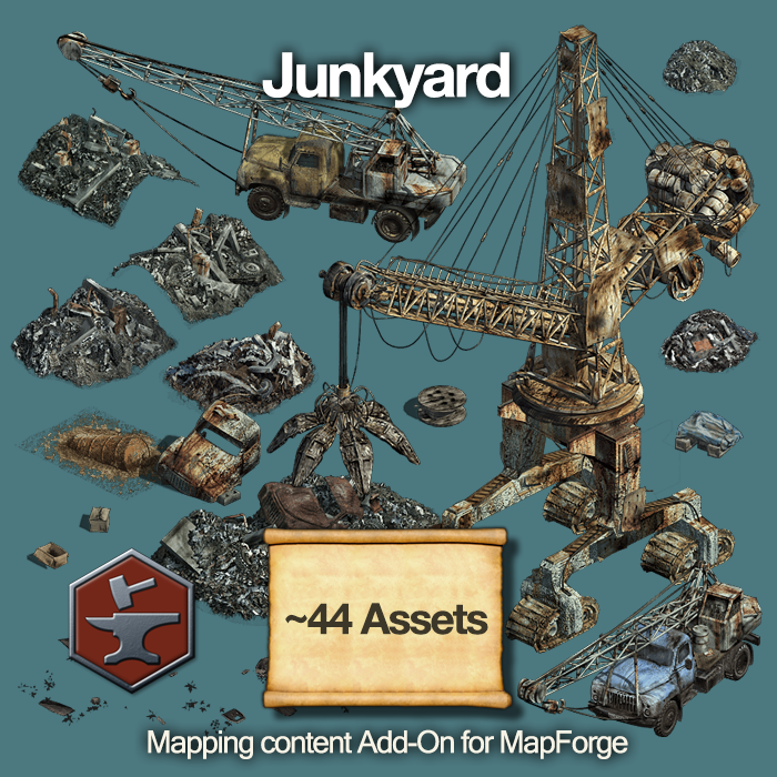 The Junkyard Add-On won't be available for purchase separately, neither during this campaign, nor next year on the MapForge Store (assuming this campaign funds). I'll include it in the bundle containing the other 13 Add-Ons from this campaign.