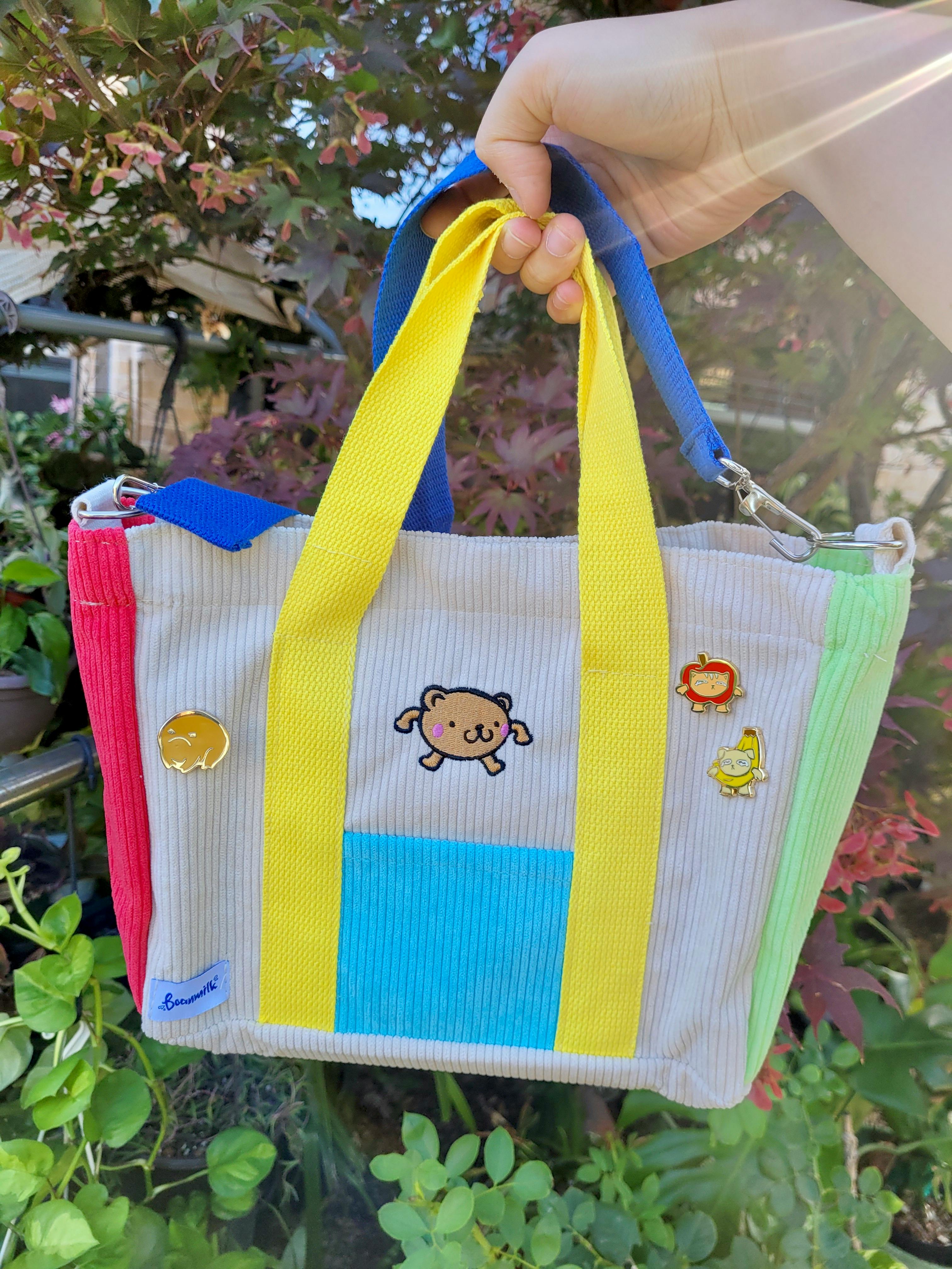 **Vote for which kind of bag you'd like to see in the polls!!!** (note: the corduroy bag is much less stable due to the softness of the fabric; as you can see with the inconsistent shape of the bag. However, the colors are brighter, so that may affect your decision. Personally, the canvas bag is much sturdier, so that'd probably affect my decision.)