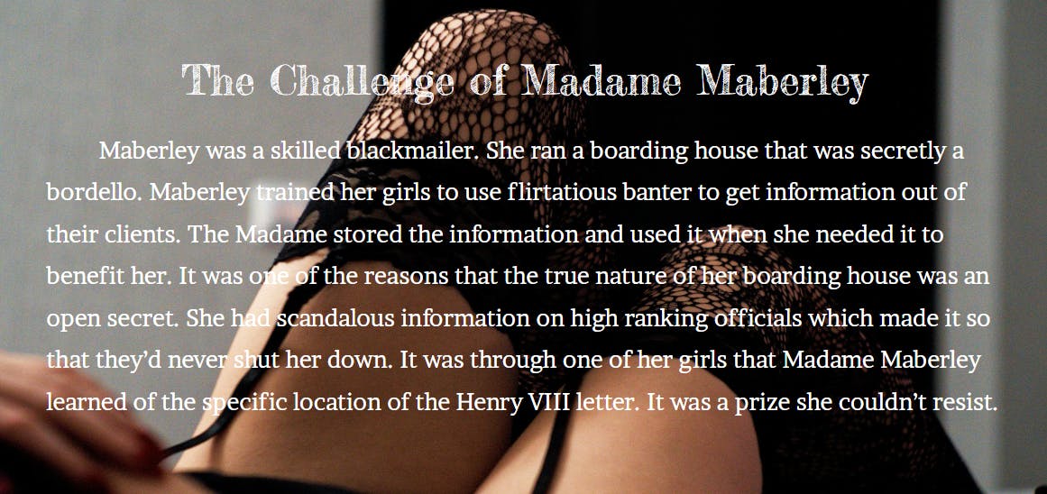 The Challenge of Madame Maberley - Holmes is presented a challenge from the forger, Madame Maberley. Can the detective determine which of three letters penned by Henry VIII is real?