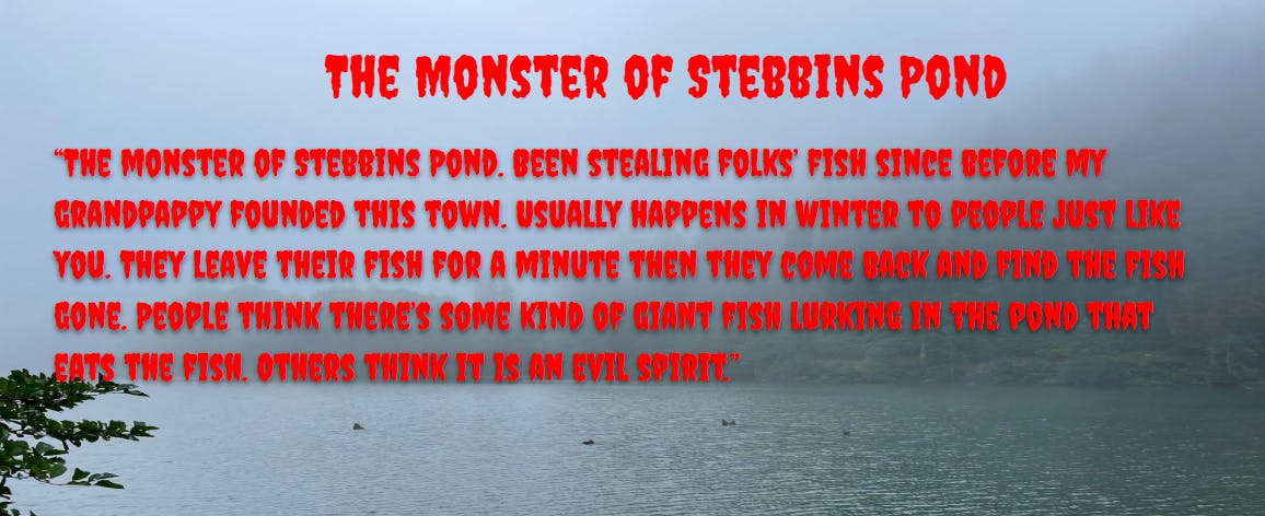 The Monster of Stebbins Pond - What is the strange creature that leaves no tracks as it steals the fish from Stebbins pond? Could it be a lake monster? It is up to Holmes to find out the truth.