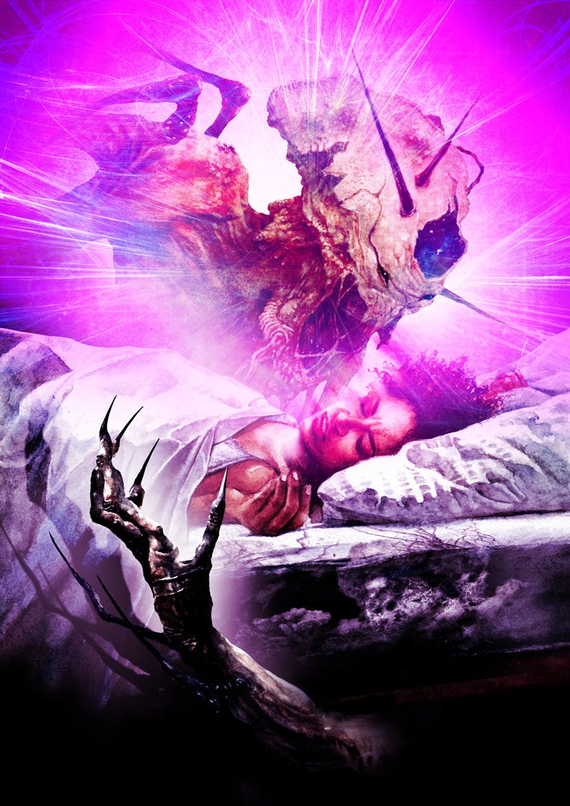 I love Vincent's visceral, spiky work and this piece is exactly what I was hoping for from the brief. We get the powerful feeling that the creature is reaching out of nightmare to terrorise the character.