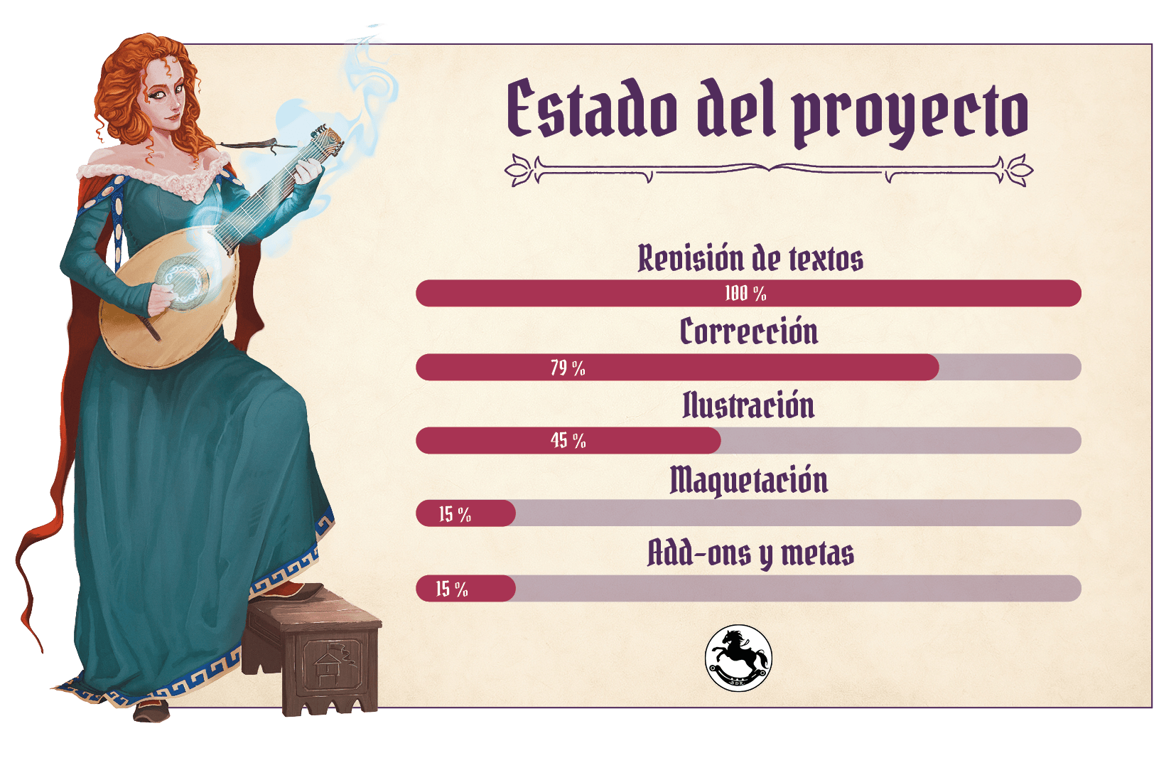 Parece que fue hace solo 28 días que hablamos con vosotros, pero aquí estamos otra vez, puntuales a nuestra cita, para informaros de cómo va el proyecto de la Ars Magica Edición Definitiva. Más abajo nos extendemos en detalle, pero antes, como siempre, aquí tenéis a Russa de Jerbiton, que nos hace el resumen rápido de un solo vistazo: