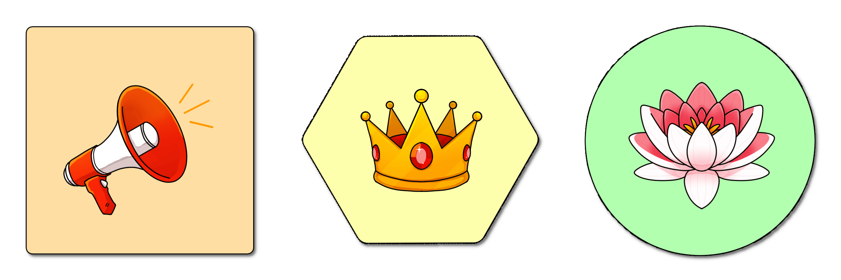 Next, we were also able to get the token designs created for the Megaphone, Crown, and Lily Flower tokens!
