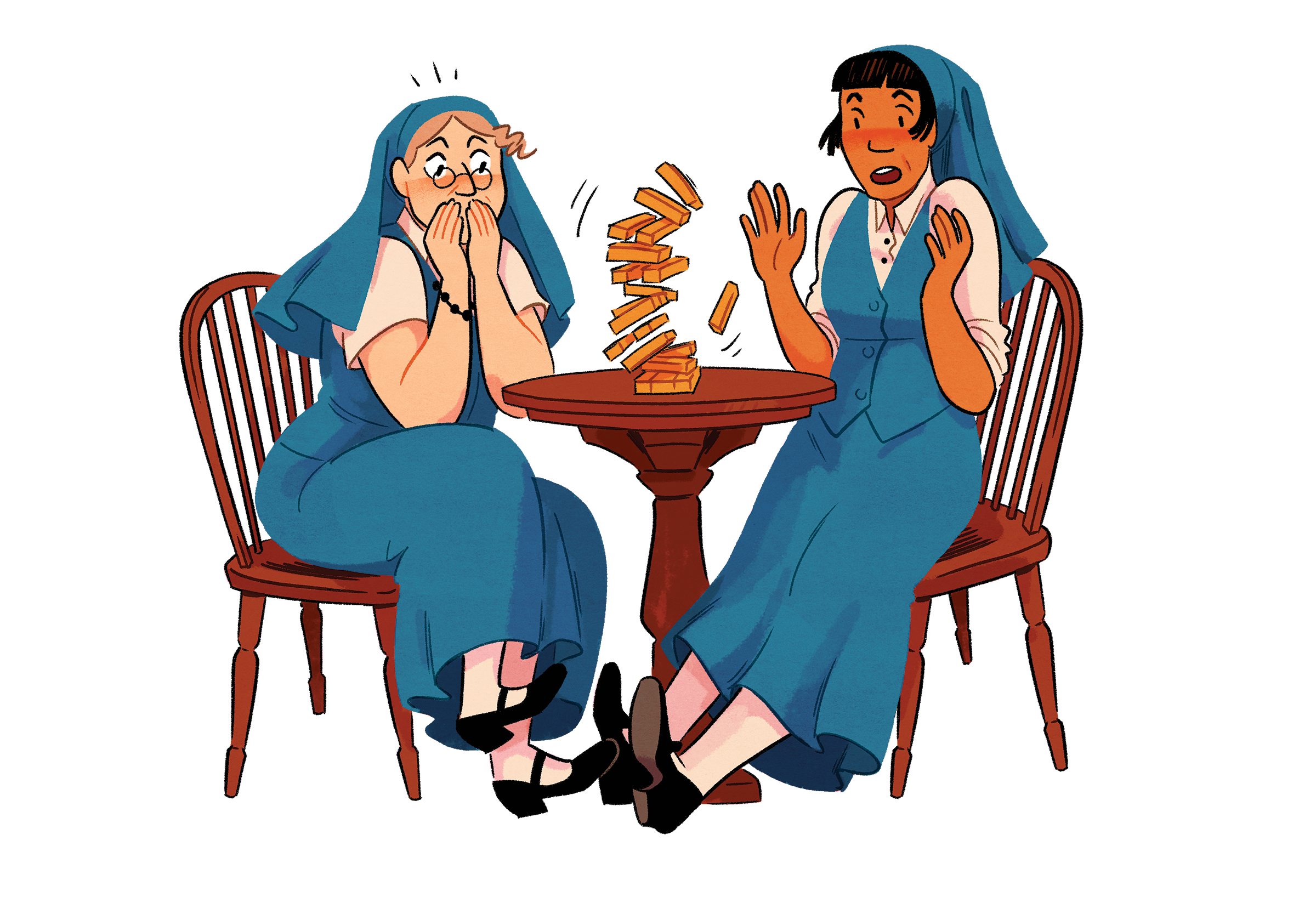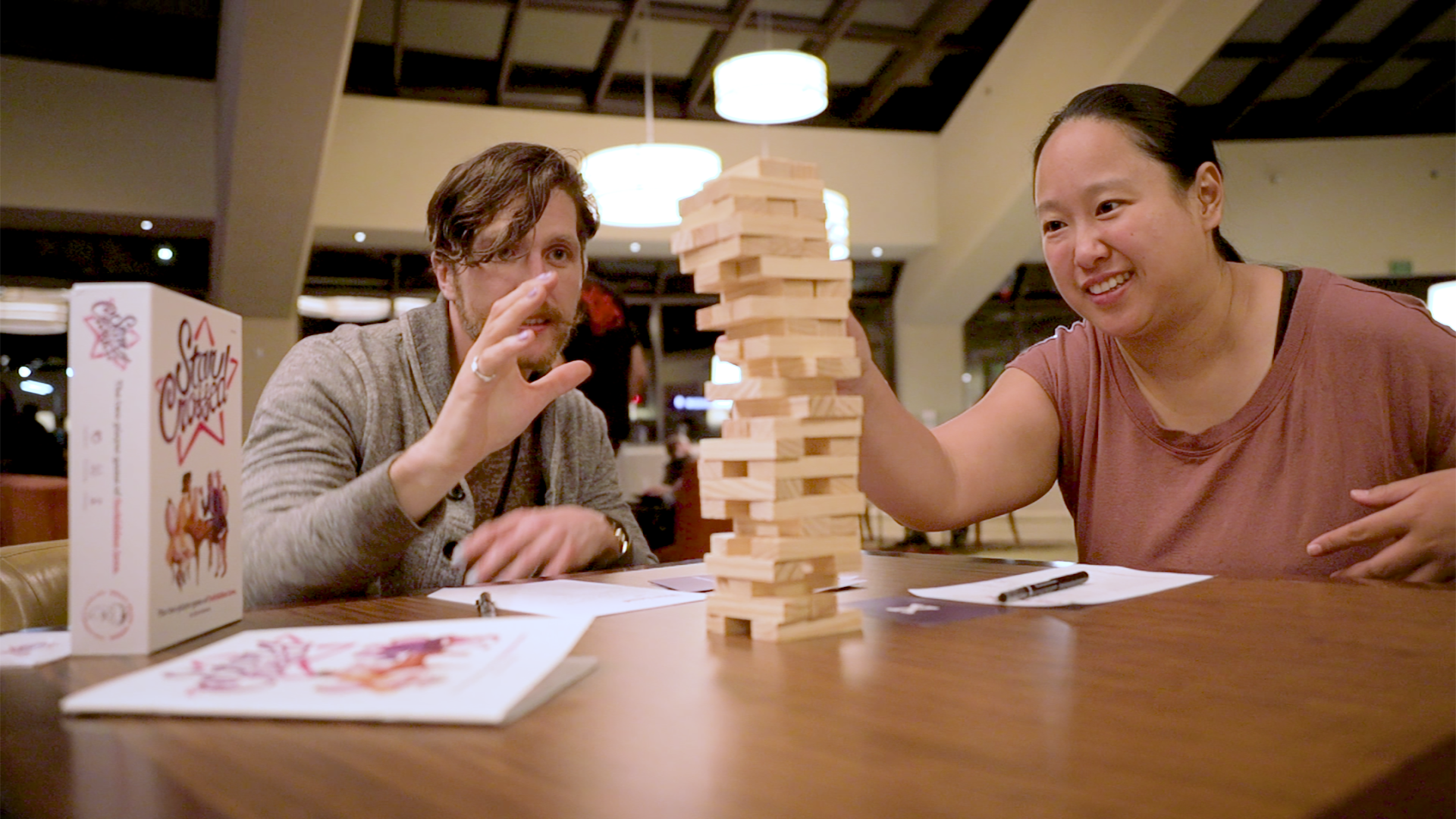 When your character does something that could increase that attraction, you pull a brick from an increasingly shaky Jenga tower and place it on the top.