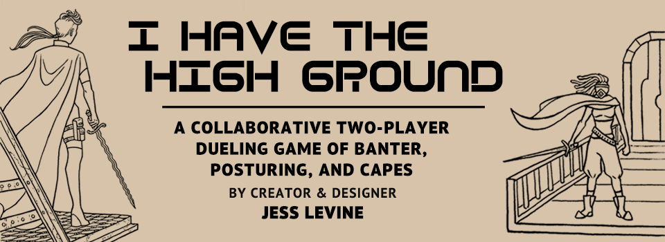 I Have the High Ground is a short, collaborative tabletop roleplaying and storytelling game for 2 players about The duel of words and wit, of melodramatic motion and threatening maneuvers. It's GM-less and genre-neutral, and takes 1-2 hours to play.