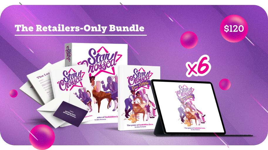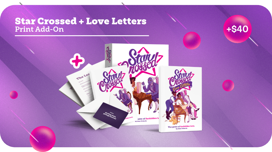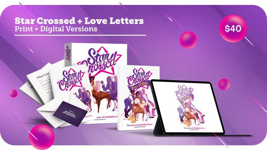 Have you never even heard of Star Crossed? Now’s your chance to get in on the two-player game of forbidden love, and enjoy a lovely start with all the pre-generated characters and settings you could wish for!
