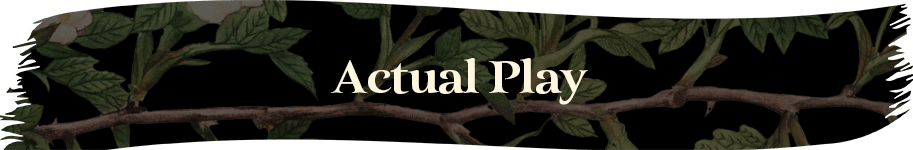 In Zhenya’s Wonder Tales, each player portrays a character in the chosen tale, who probably has an interesting secret and definitely has three story beats—moves—that need to be triggered. Moves are big, classic events that everyone will be playing toward, like Klára’s “Fall in love with Ondřej” in The Bird Rivals. We know love will take flight, but how? And when? It will be different every time you play, but it’s a fairy story, and certain things just happen in fairy stories—like falling in love, maybe with the wrong person.