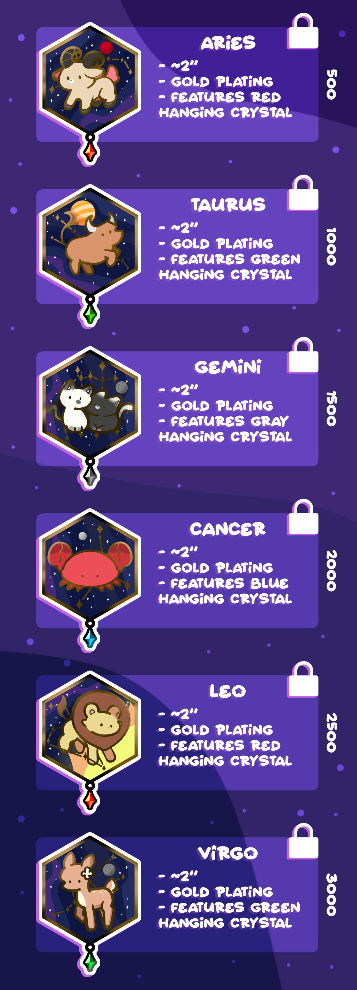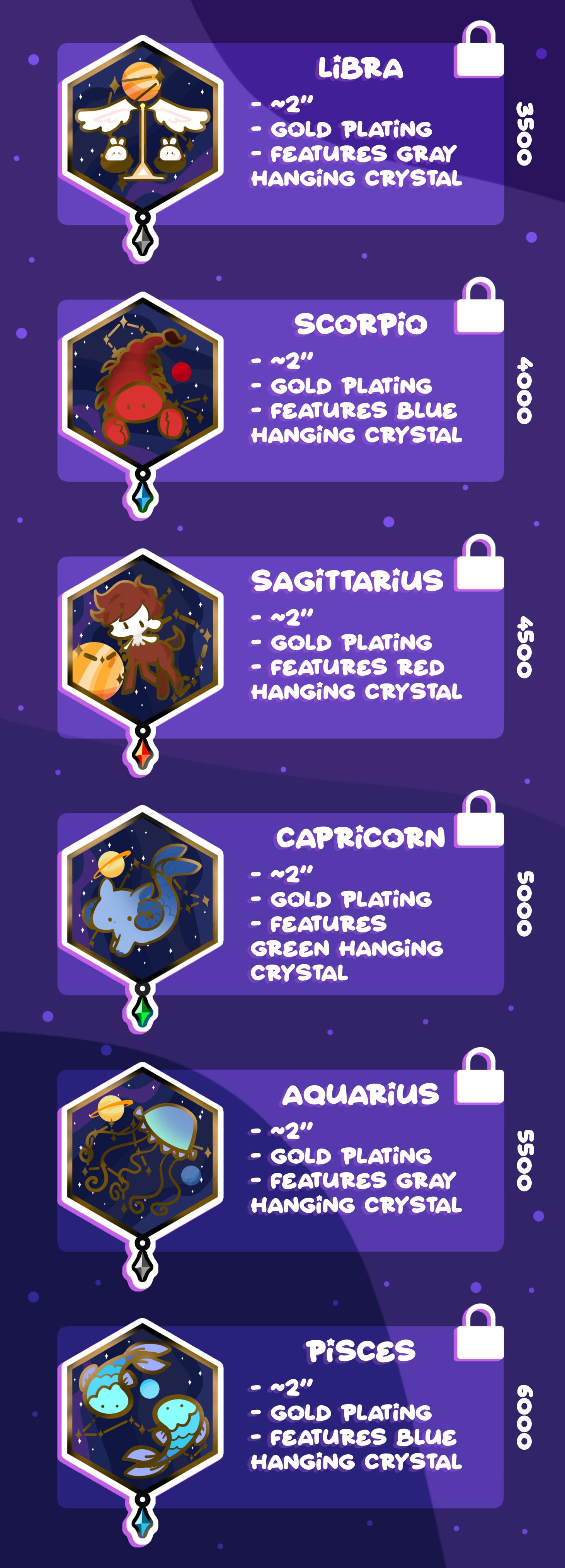 Join me on a journey through the stars as we delve in with our Zodiac enamel pin collection! All 12 constellations shall be featured, each with its own unique design and additional pins to be unlocked.