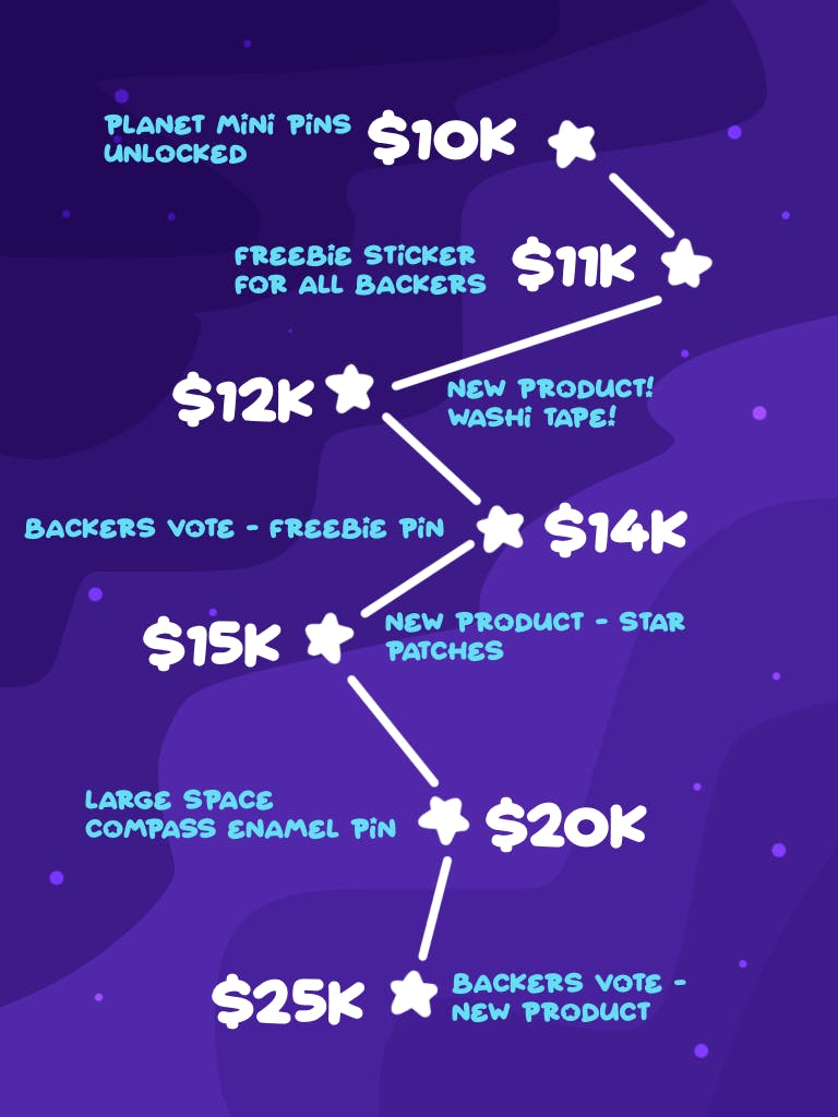 Our initial funding goal will cover producing one of the full set of 12 pins. With enough support, this campaign will be expanded to include all basic pins, mini pins, additional merchandise, and free stickers and pins for all backers!