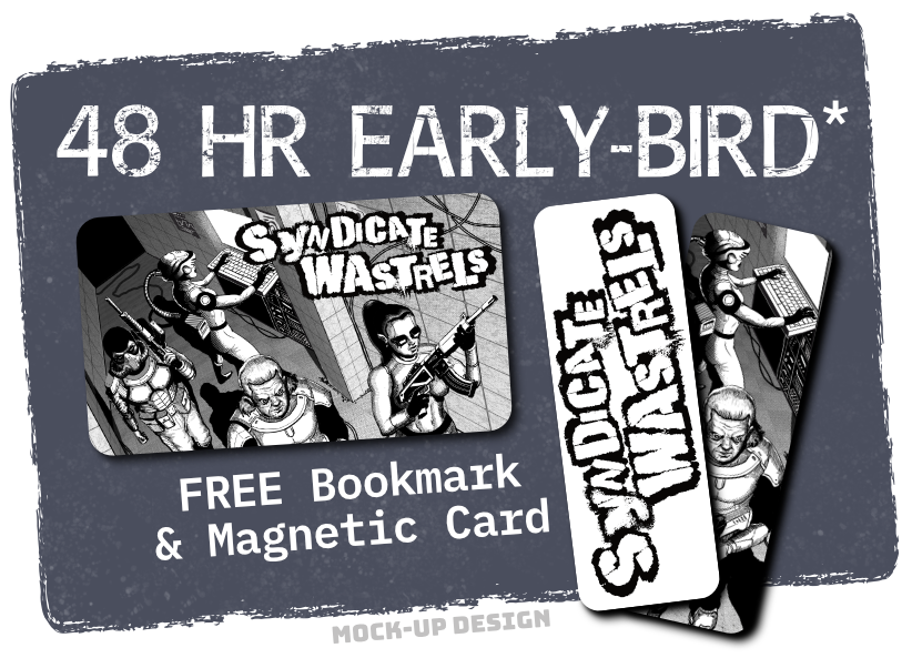 Syndicate Wastrels is a 30+ page Zine featuring three new criminal organizations to bring trouble to your galactic systems. The book is jam-packed with details on gang moral ethos, violent hierarchy, stolen technology, and illicit economic activities, offering everything that your players will need to hunt them down, work alongside them, or manipulate them for their own gain.