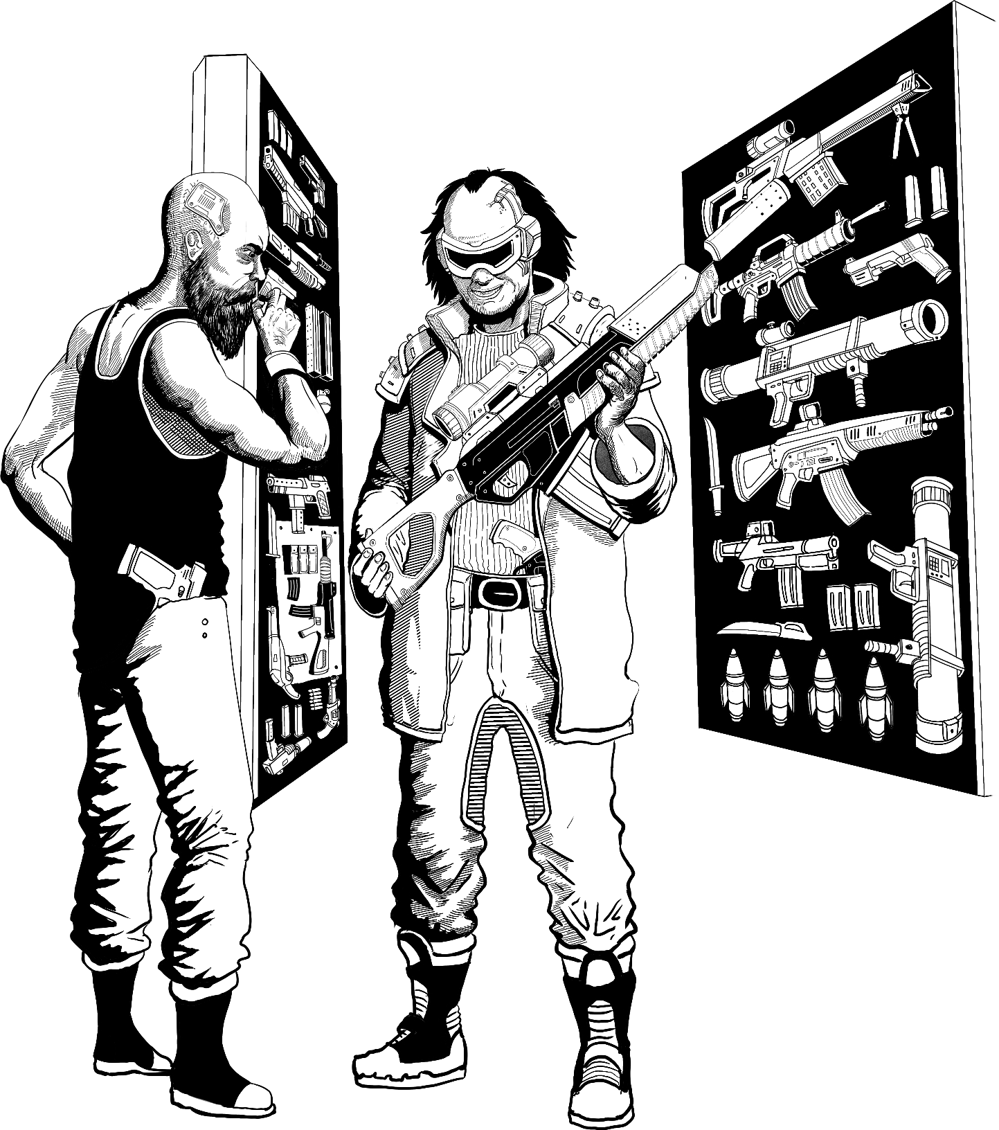 - Void Huffers: Violent, chaotic, drug dealers that sell backyard pharmaceuticals and synthetic cyberware. Half the price, twice the danger, and all of the chemical overload.