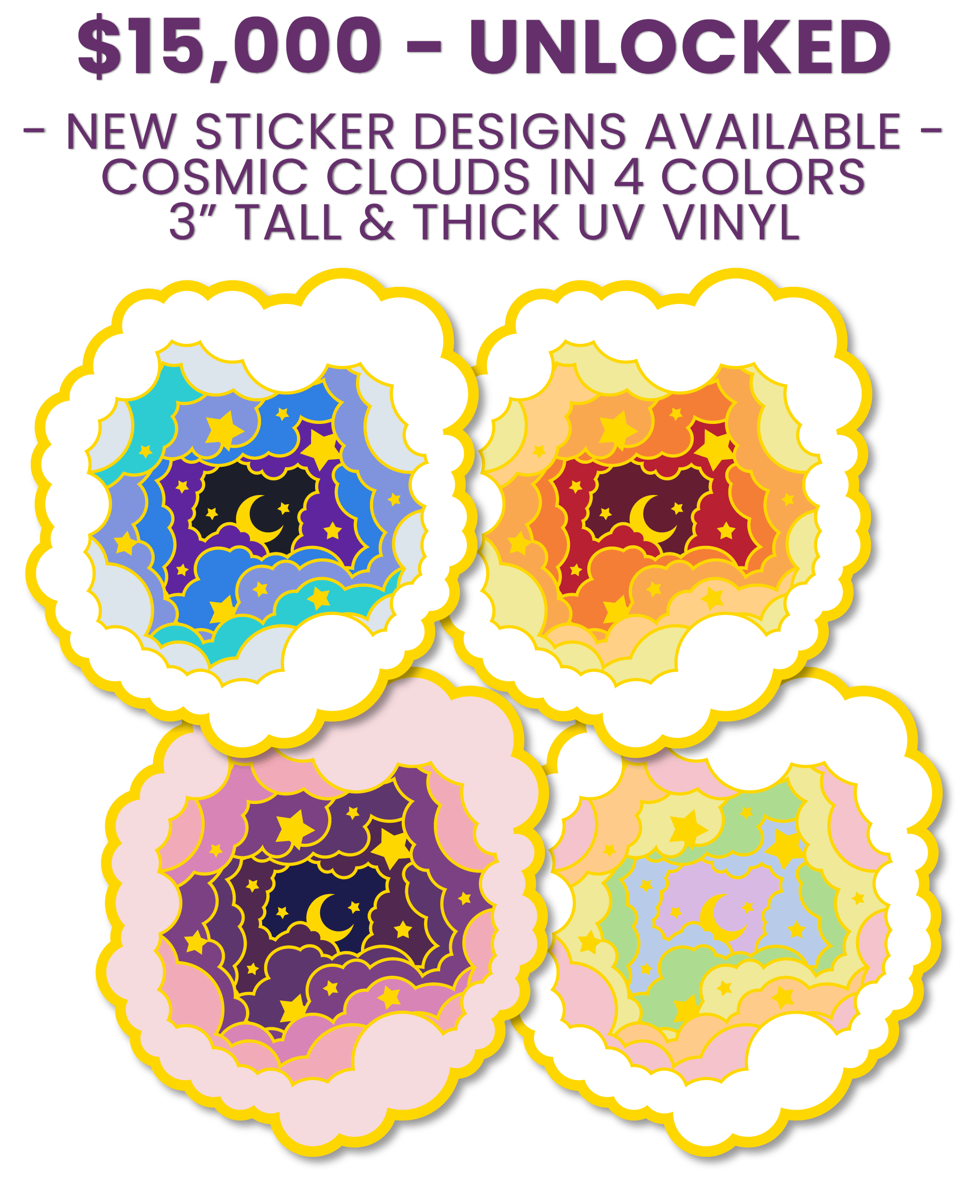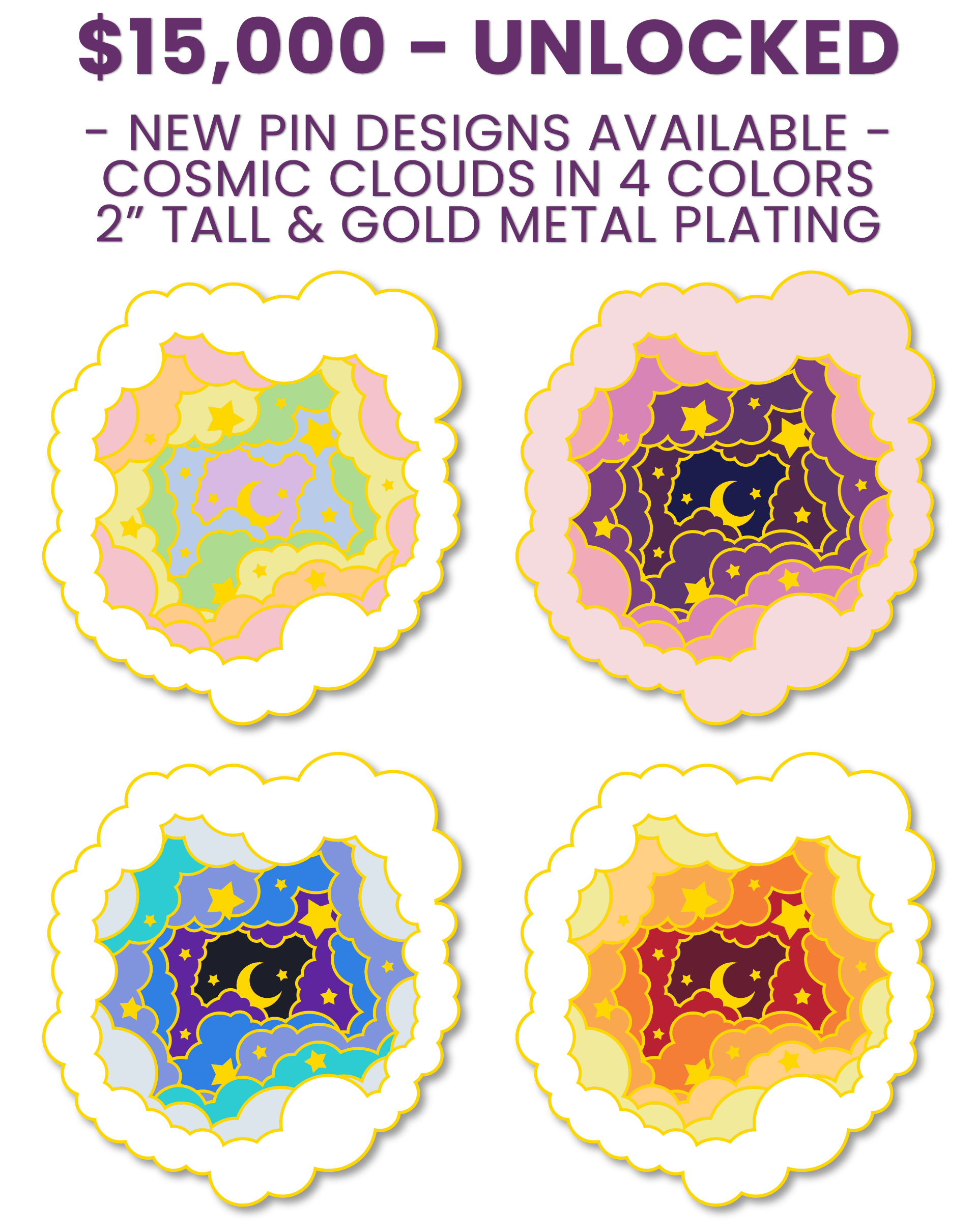At $15,000, Cosmic Clouds will be available as pins and stickers!