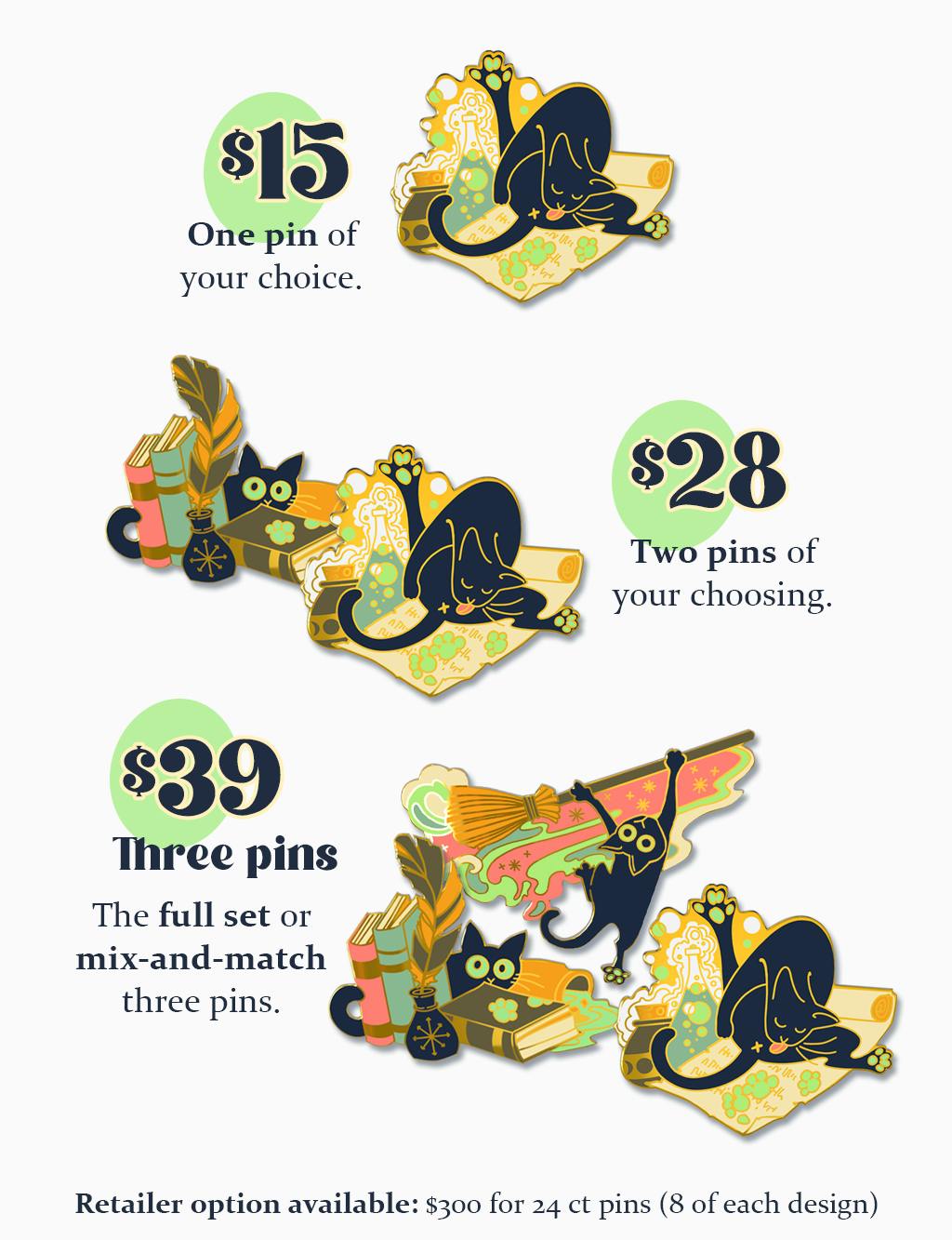 Three Pins: $39 (full set of 3 pins or mix-and-match)