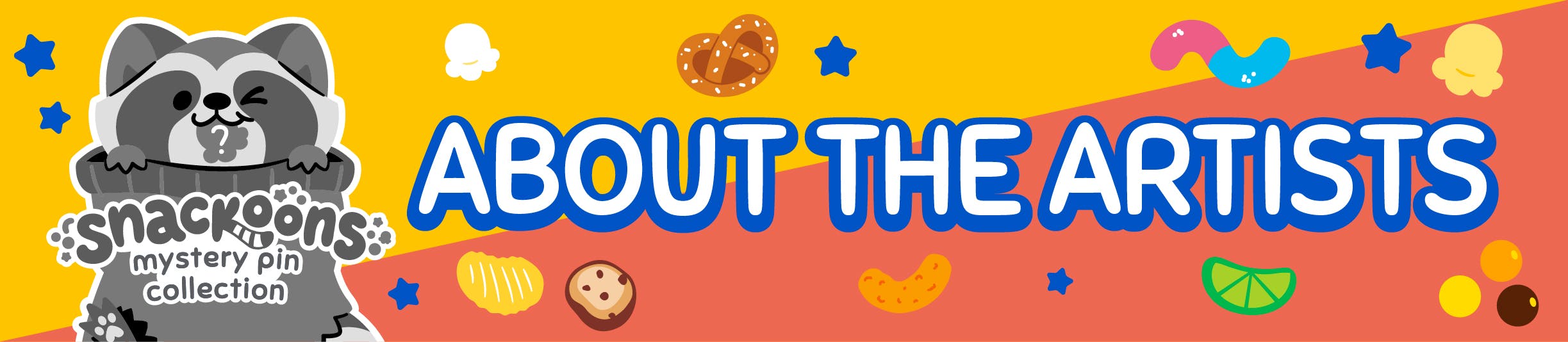 Snackoons is a brand-new sweet & salty collection of dyed enamel pins featuring different colorful raccoons with their favorite snack food treats!