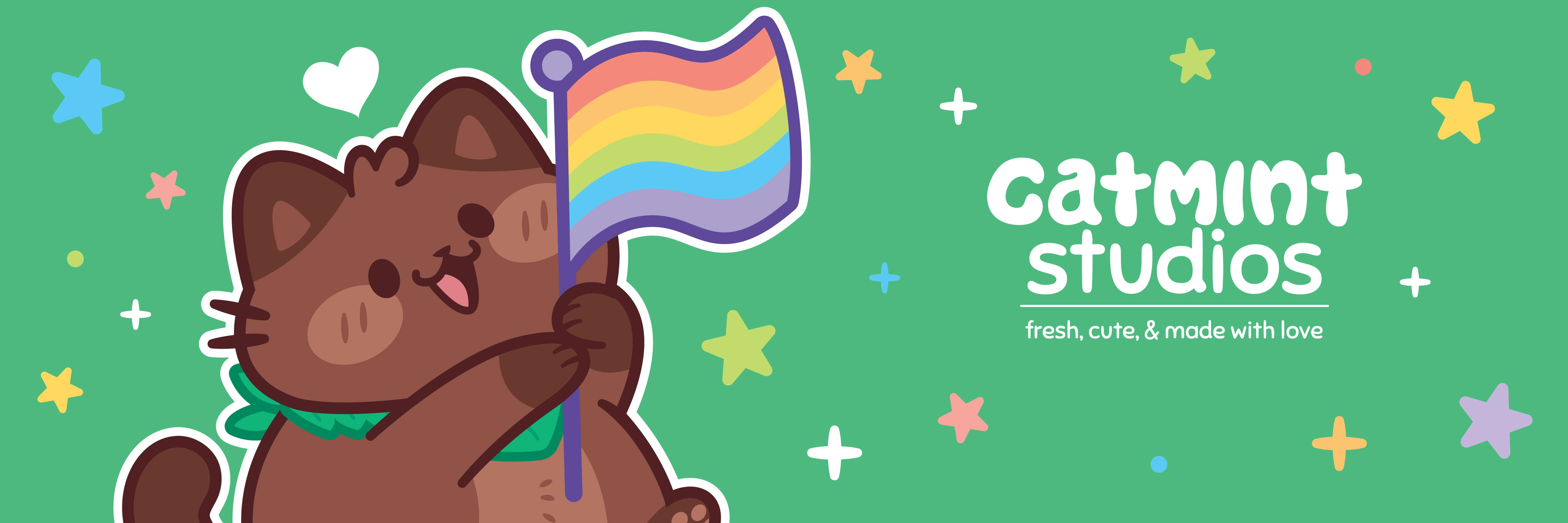 We are Catmint Studios, queer artists Aubry (they/them) & Michelle (she/her). We're partners in both business & life, and love being able to create cute & relatable content together for others to enjoy.