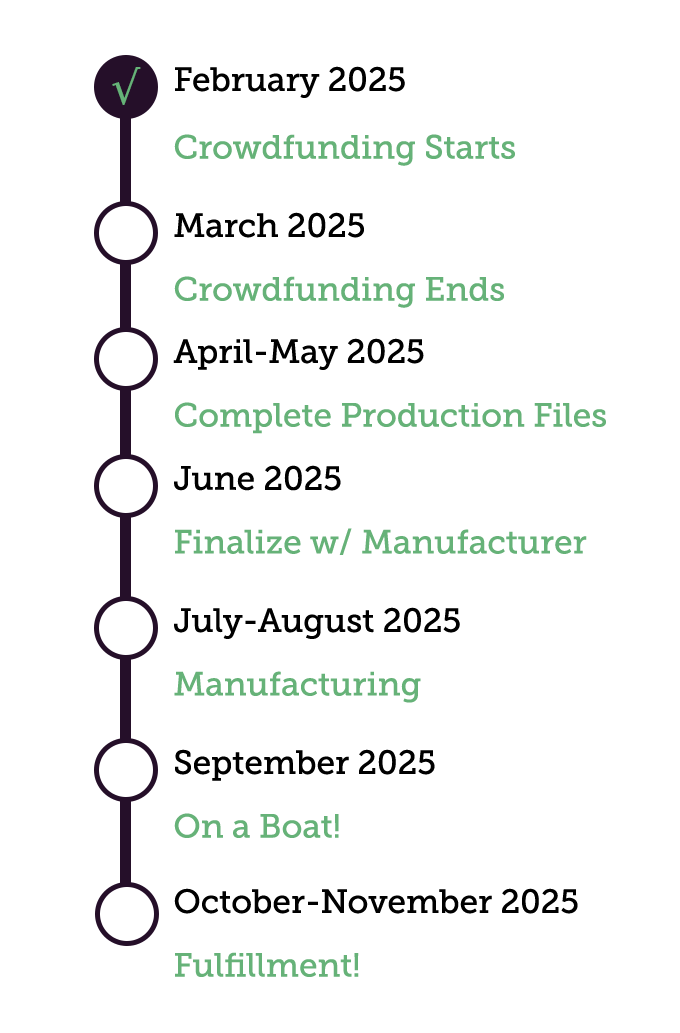 Once we have successfully funded, we will push forward on the following schedule to complete the project. The game design is finished, so we are mostly at the stage of finalizing production designs and getting files right. That said, we have built a little slack into this to account for the current and perennial problems with international manufacturing, freight, and shipping:
