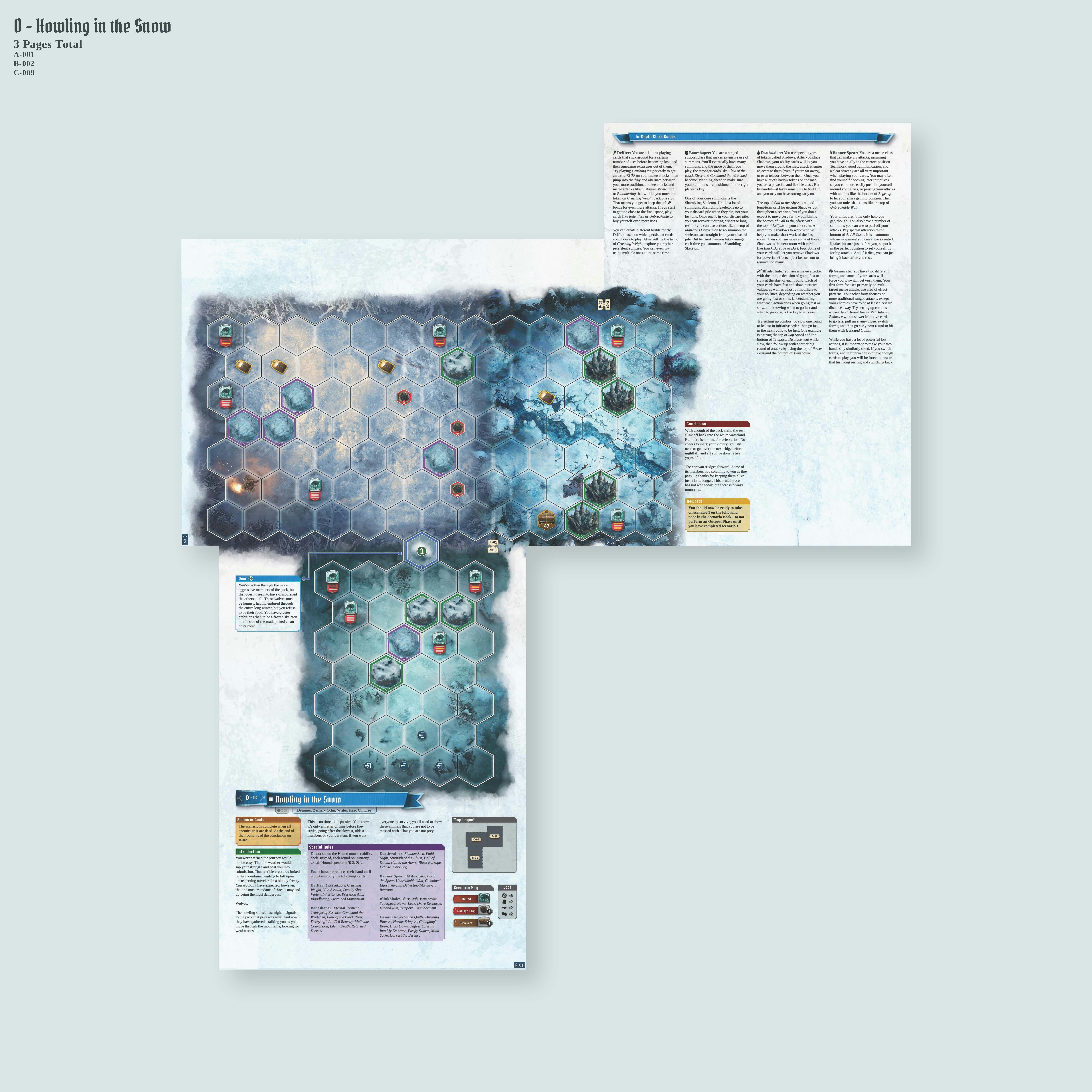 Now, I could probably talk forever about all the different unique scenario rules that provided a host of unique challenges in translating them to this format - varying layouts depending on which way you go, larger scenarios that actually required 5 pages, disappearing and shifting map tiles - but I won't. I will just say that you can rest assured that we solved all the myriad of problems through some creative ingenuity (mostly on the part of the layout designer, Aaron), and if you're curious about a specific scenario, you'll just have to get the books and see for yourself.