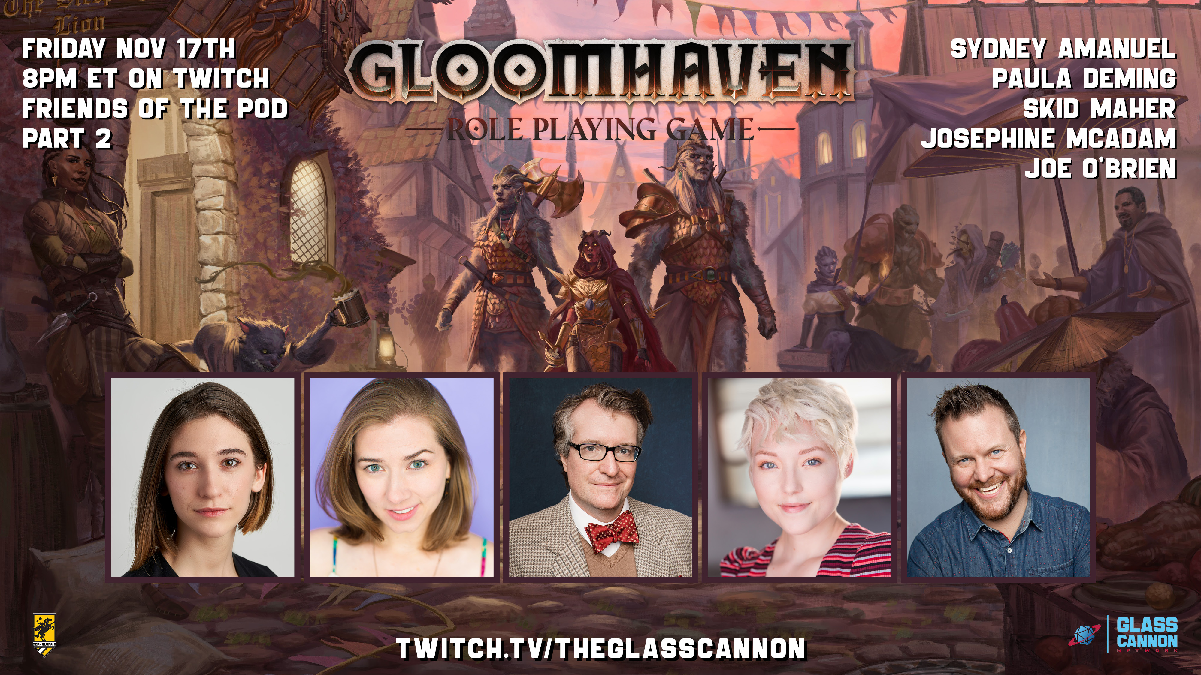 But you don't need to have watched that to enjoy them playing the game tonight at 8pm ET on Twitch! Joe O'Brien is Gloom Mastering for Sydney Amanuel, Paula Deming, Skid Maher, and Josephine McAdam, and we are all very excited to check it out!