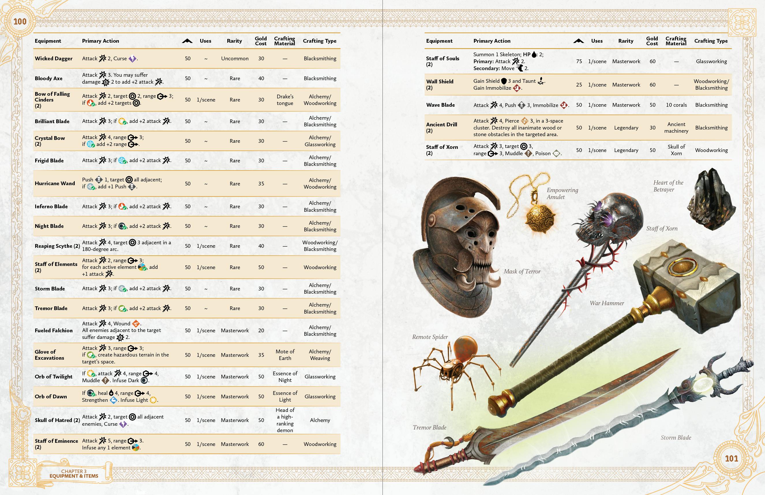 Throughout the production of our games, we have gathered a whole lot of amazing illustrations of cool items you may encounter on your adventures. This book has given that artwork a chance to escape the confines of their mini euro cards. Classic artwork by Alexandr Elichev, Mates Laurentiu, and Yanis Cardin are worked in throughout the book, showing greater detail than their previous published appearances.