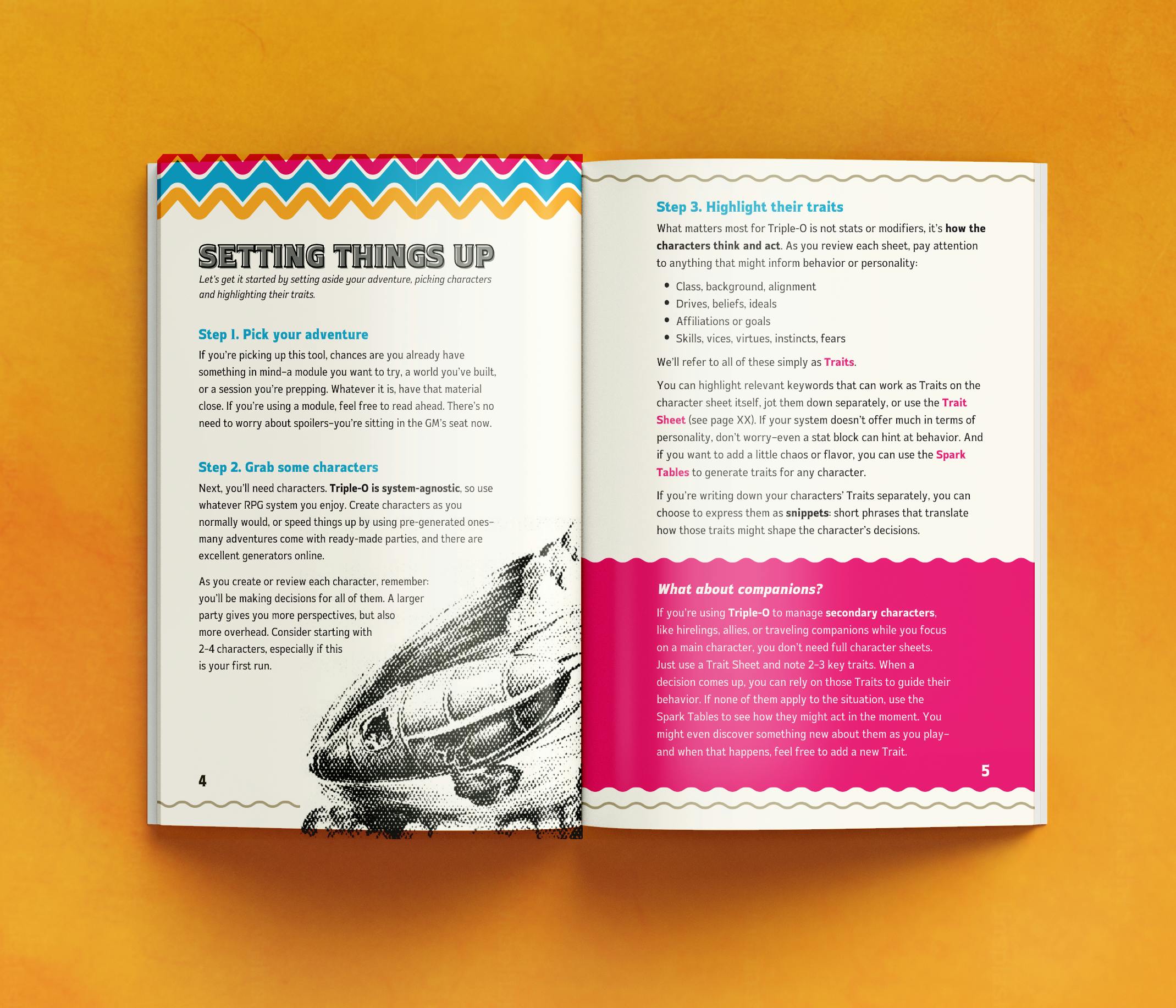Triple-O is a tool for solo RPG players who want to invert roles and play as the GM instead of a character. Originally launched as a one-page solution, this new zine version brings more random tables, examples, and new use cases!