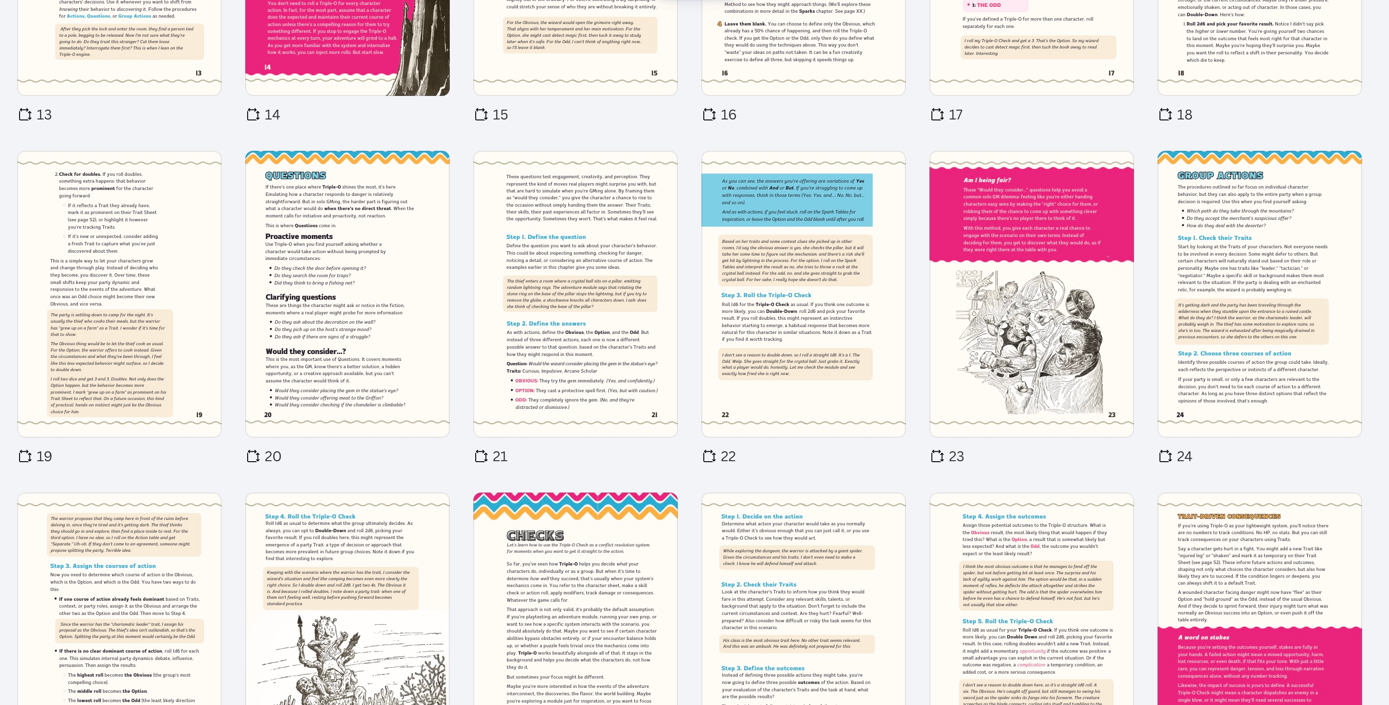 That said, this is where we reach the physical limits of what makes sense for a zine in saddle-stitch format. But honestly, I’m very happy with the range of situations the book will cover. I think it will feel complete and useful when you’re emulating your characters.