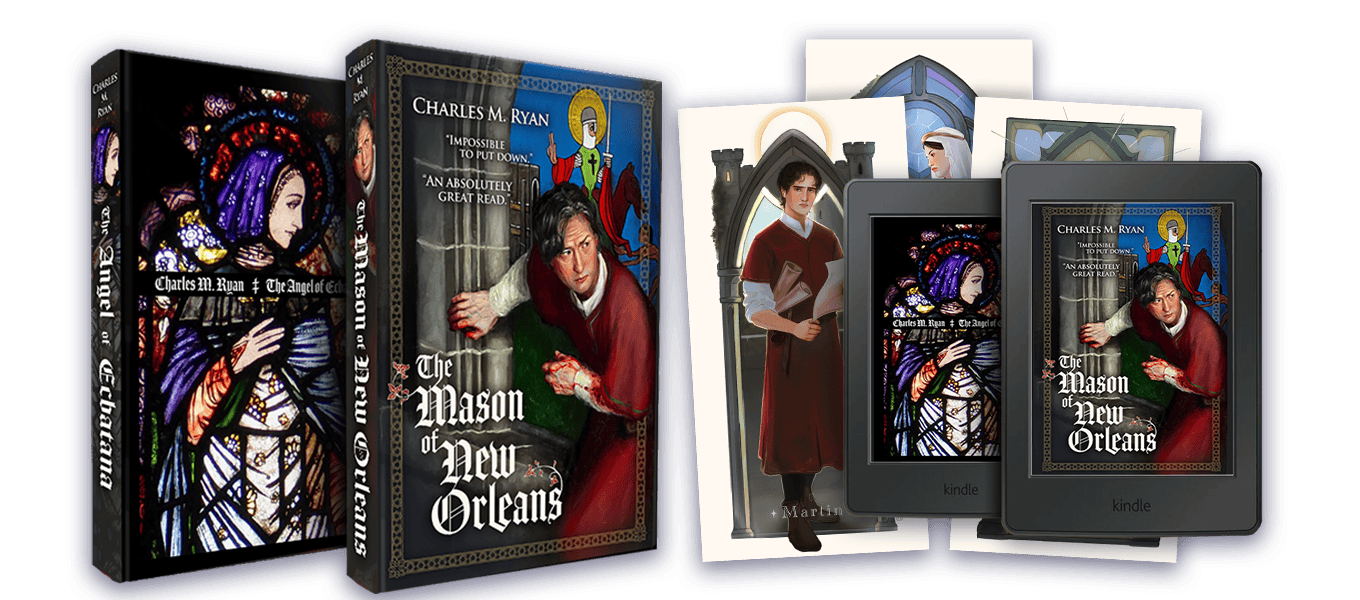 At this level you get both The Mason of New Orleans and The Angel of Ecbatana in this campaign's exclusive, upgraded print editions. Your physical books will be autographed (and just to be clear: that'll be by me, the author).