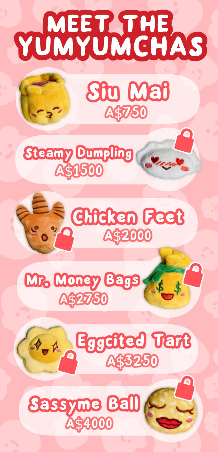 The initial goal is to fully fund the Siu Mai design first, and every subsequent stretch goal met will unlock a new design to be added to your choice of bag charm design. Do pledge even if the design you wanted has not been unlocked, as it greatly contributes to unlocking more designs!