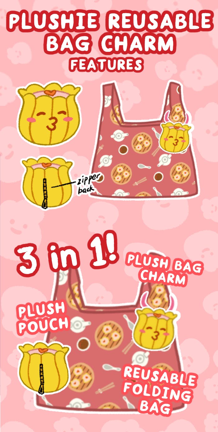 The perfect yumcha inspired merch is here! Packed with all sorts of goodness this humble plushie reusable bag charm is a 3-in-1 combo!