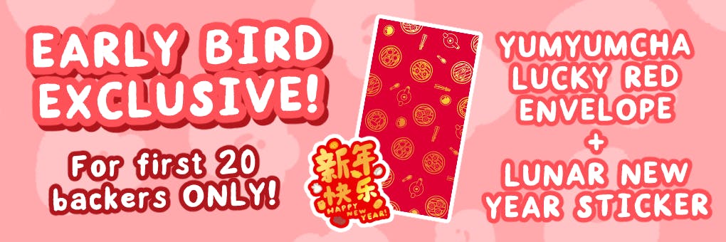 The first 20 backers will also receive a handcrafted limited edition YUMYUMCHA lucky red envelope + a bonus lunar new year sticker!