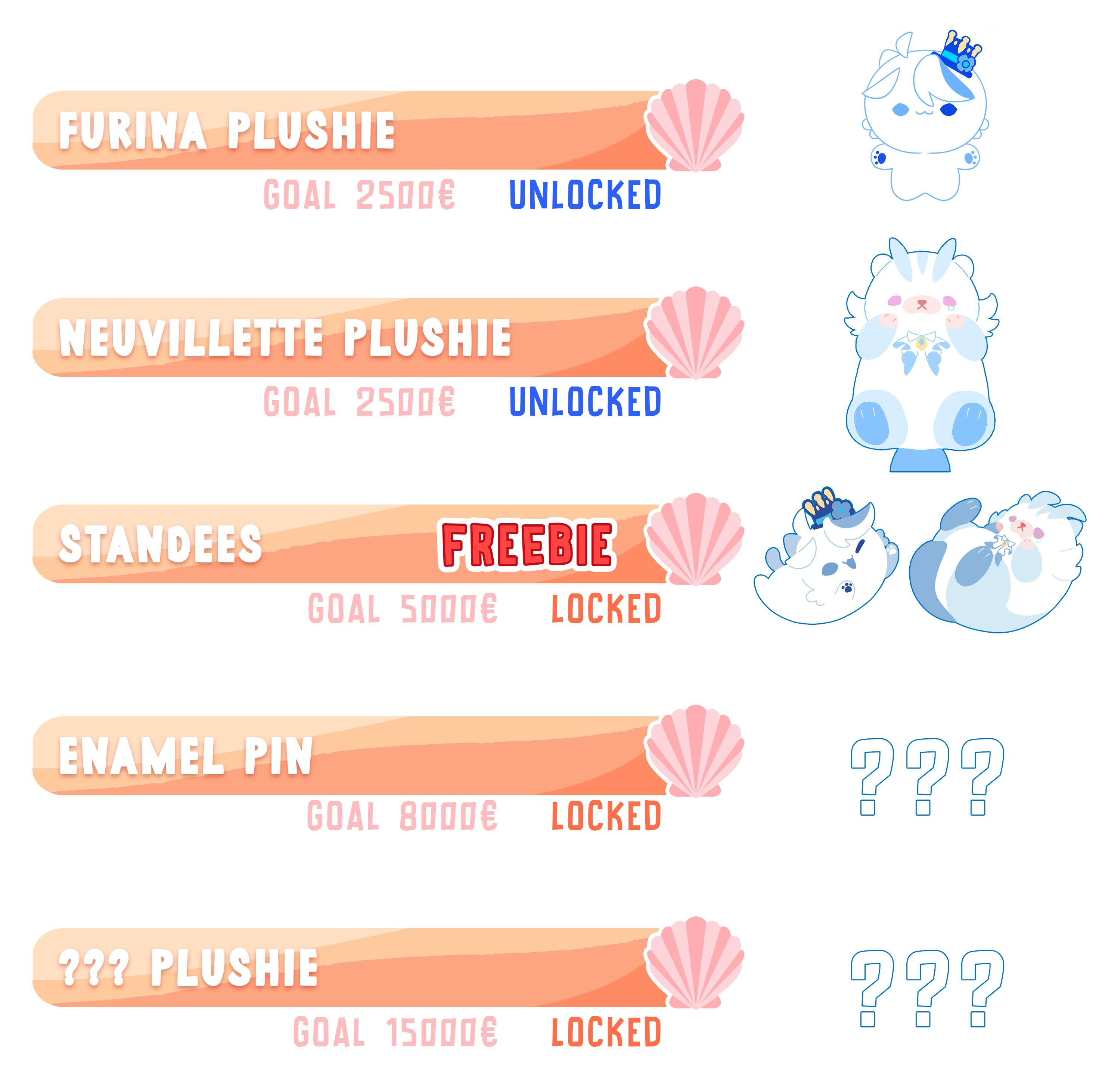 Rewards are unlocked if we surpass the funding goal! You can pledge for a locked goal to help us to reach it sooner! ♡