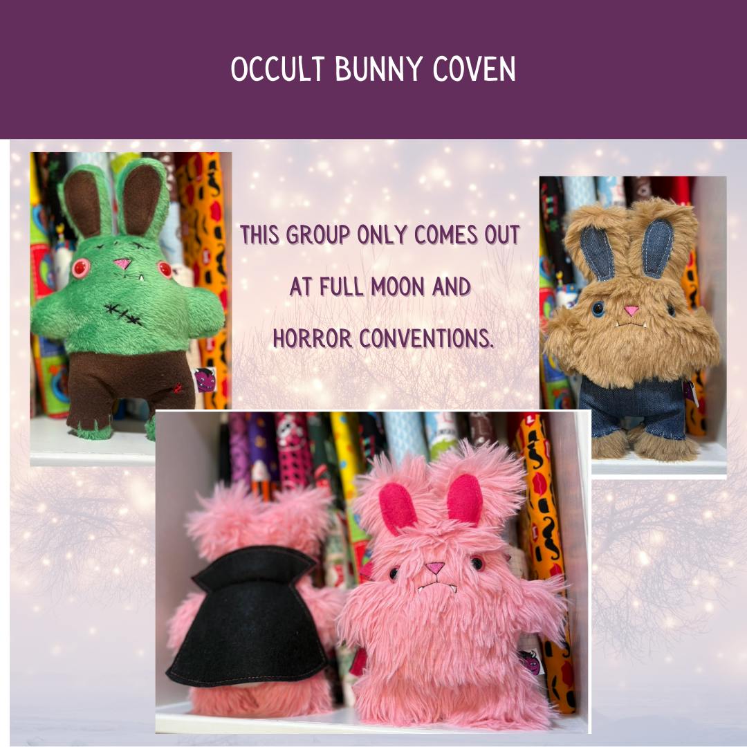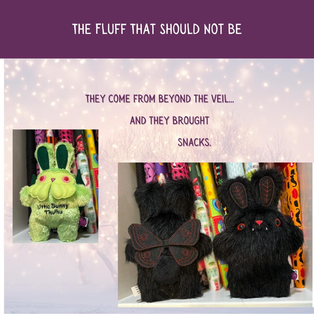 What’s a bunny stuffie? 🐇✨ Think of it as a plush bunny who took “cosmic cosplay” a little too seriously—decked out in scarlet witch robes, wizard hats, moth wings, or even eldritch tentacles. They’re soft, squishy, and utterly ridiculous… which makes them the perfect collectible companions for a whimsical world like Crystals, Carrots & Cosmic Clues. Unlocking them as stretch goals means you don’t just read about Ana’s bunny brigade—you get to adopt one of your own.