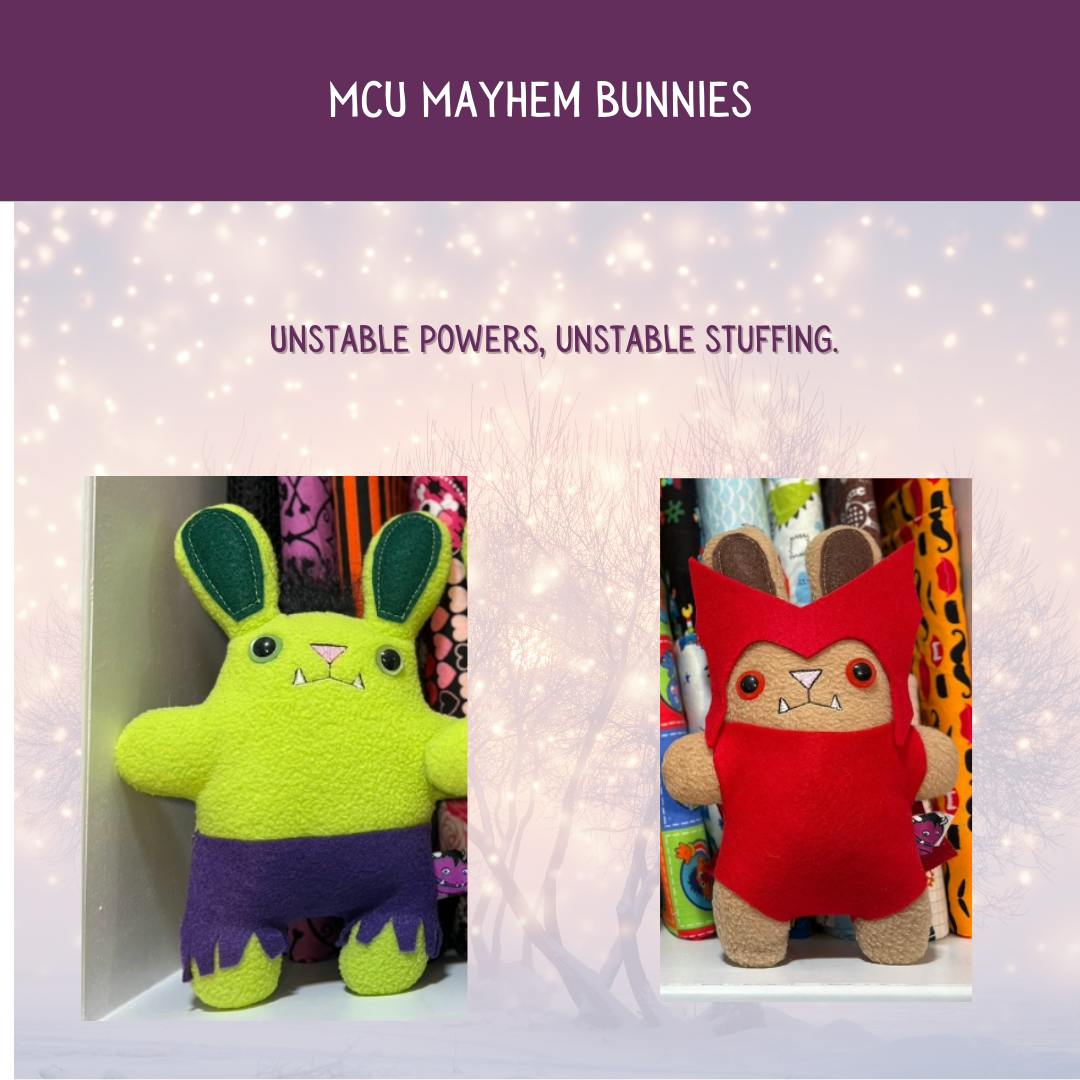 Bunzilla (And the other) Stuffie Magic – Handmade by Heidi at Sickly Sweet Style. Yes, Bunzilla is real—Ana has one, I have one, and soon… so can you! 🐰✨