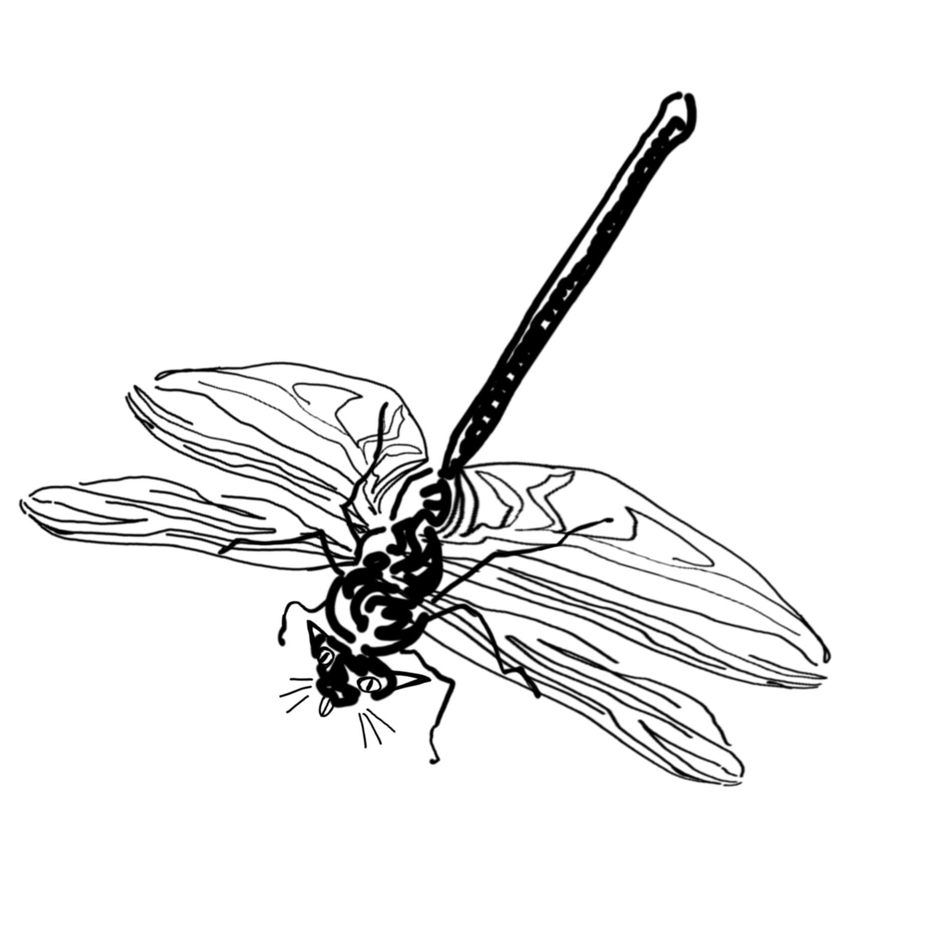 A dragonfly creature with a cat-like face and ears.