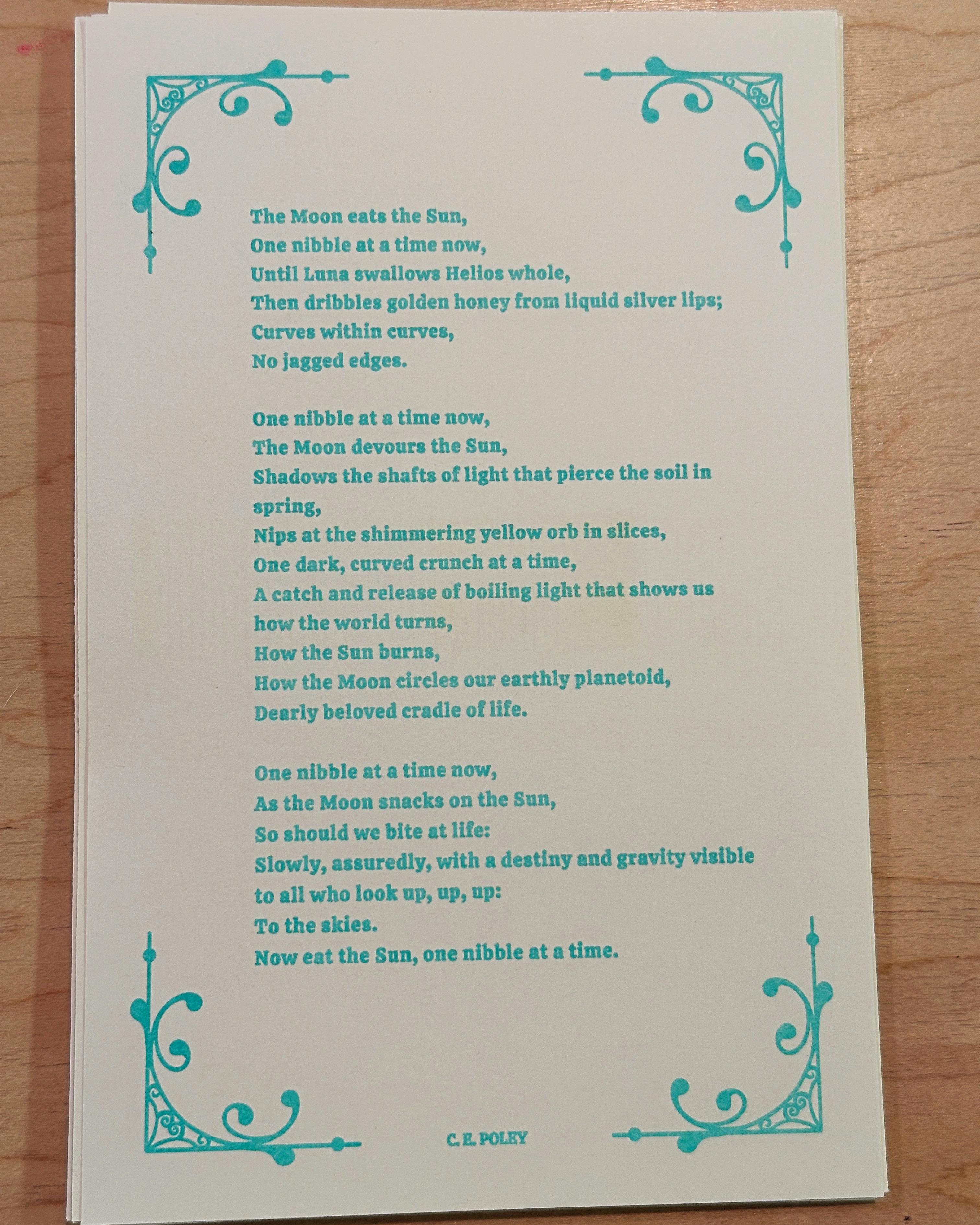 Print of the poem "Moon Eat Sun" by Coco Poley