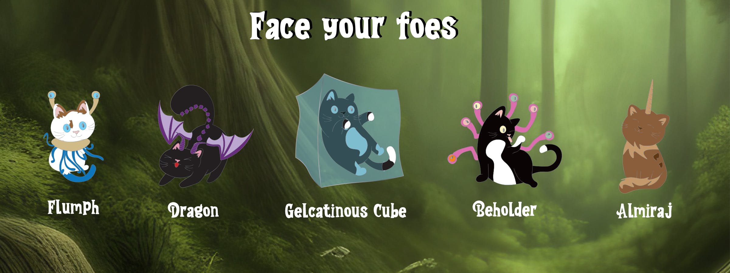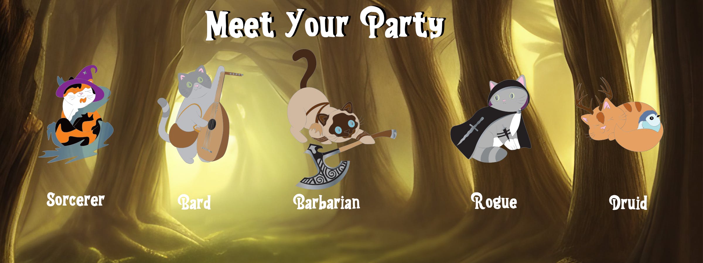 Grab your cat, grab your dice and come adventure with us. Dungeons & Cats series one. This adventuring felines are an enamel pin series features our favorite heroes on an EPIC quest through the forests of the Feline Realms.