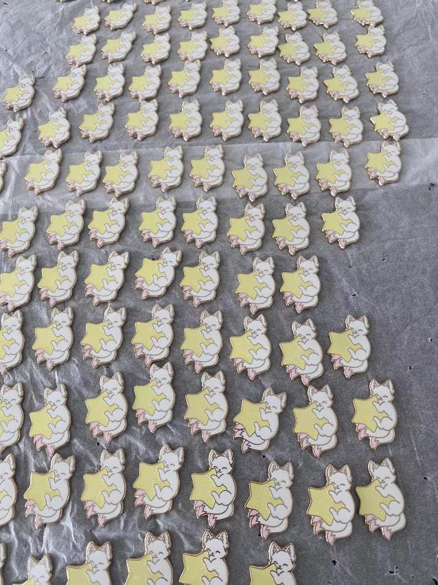 I'm expecting the main pins in about 2 weeks. Tariffs slow down international shipment considerably, otherwise I would probably get them next week. Once I receive them, I will be double checking the pins, getting them on backing cards, and then starting fulfillment.
