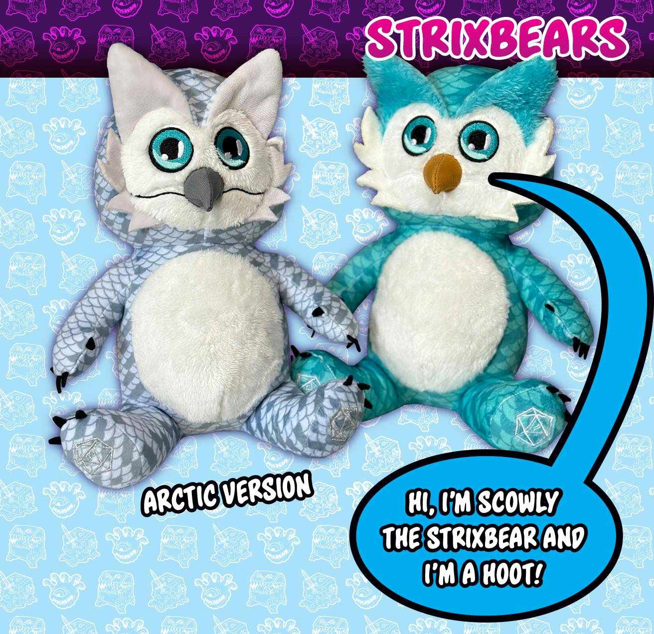 When we hit $21k, Six Plushie pledge level & up will receive a bonus Arctic Scowly plush! This new plushie will also become available for everyone as a plushie choice at the end of the campaign.