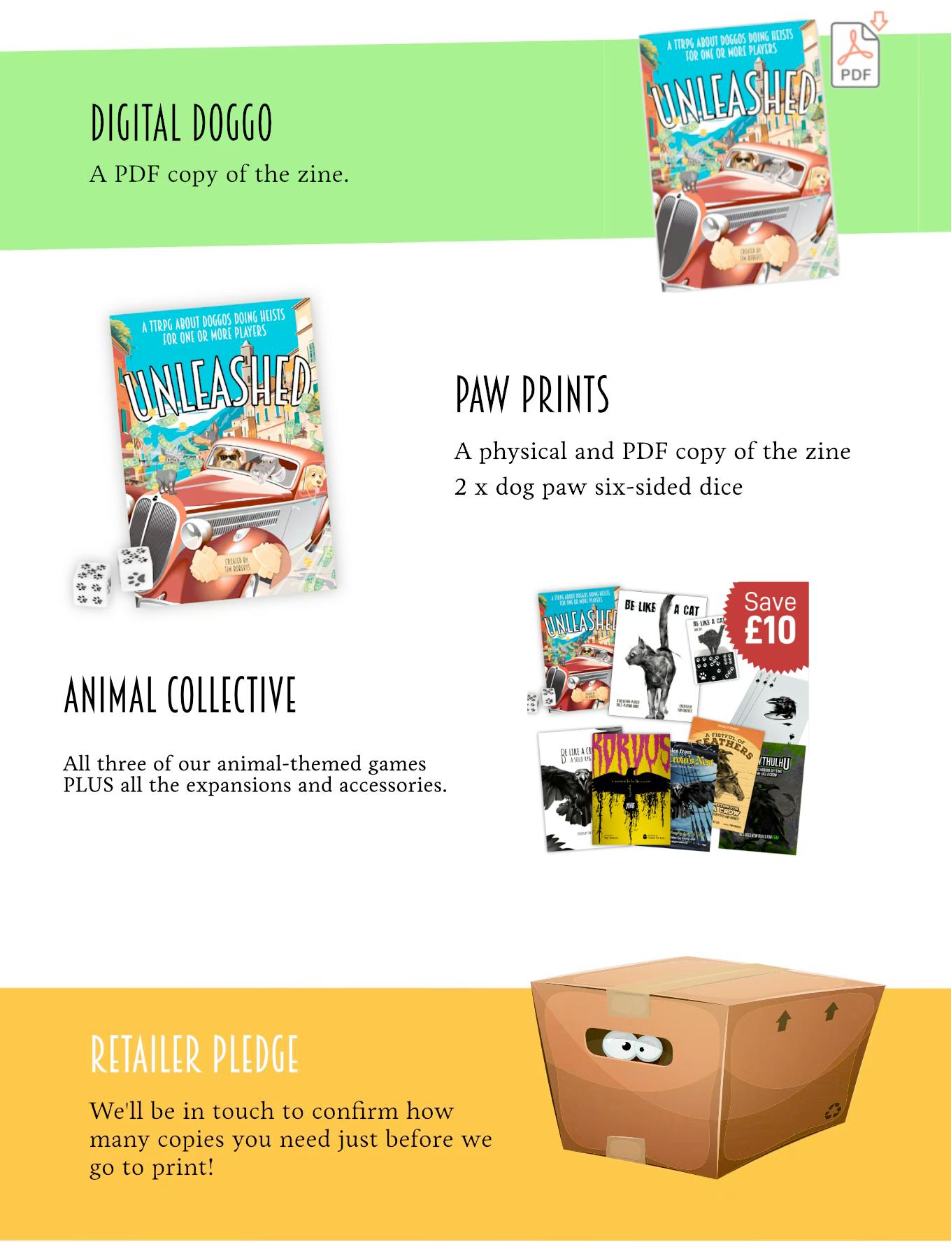 From the award-winning creator of Be Like a Cat and Be Like a Crow comes a game about our best animal friends. This quick-to-learn TTRPG can be played solo or as a kennel crew and requires no GM. Grab some six-sided dice and prepare to get heisting.