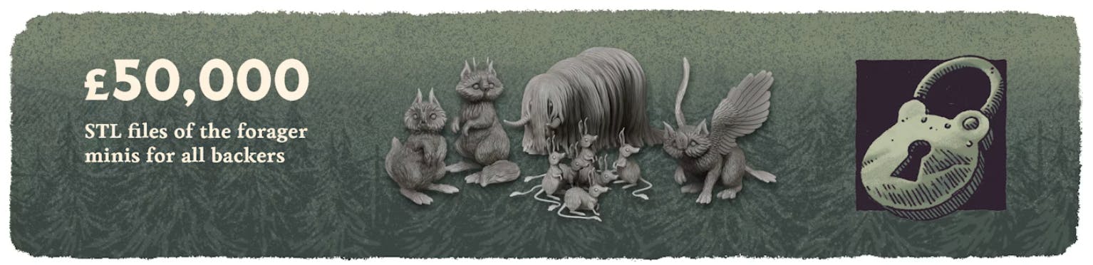 Finally, we are almost at the 50k mark. This means in the next few hours we are likely to pass the stretch goal that gives all backers a free set of STL files to 3D print their own minis!