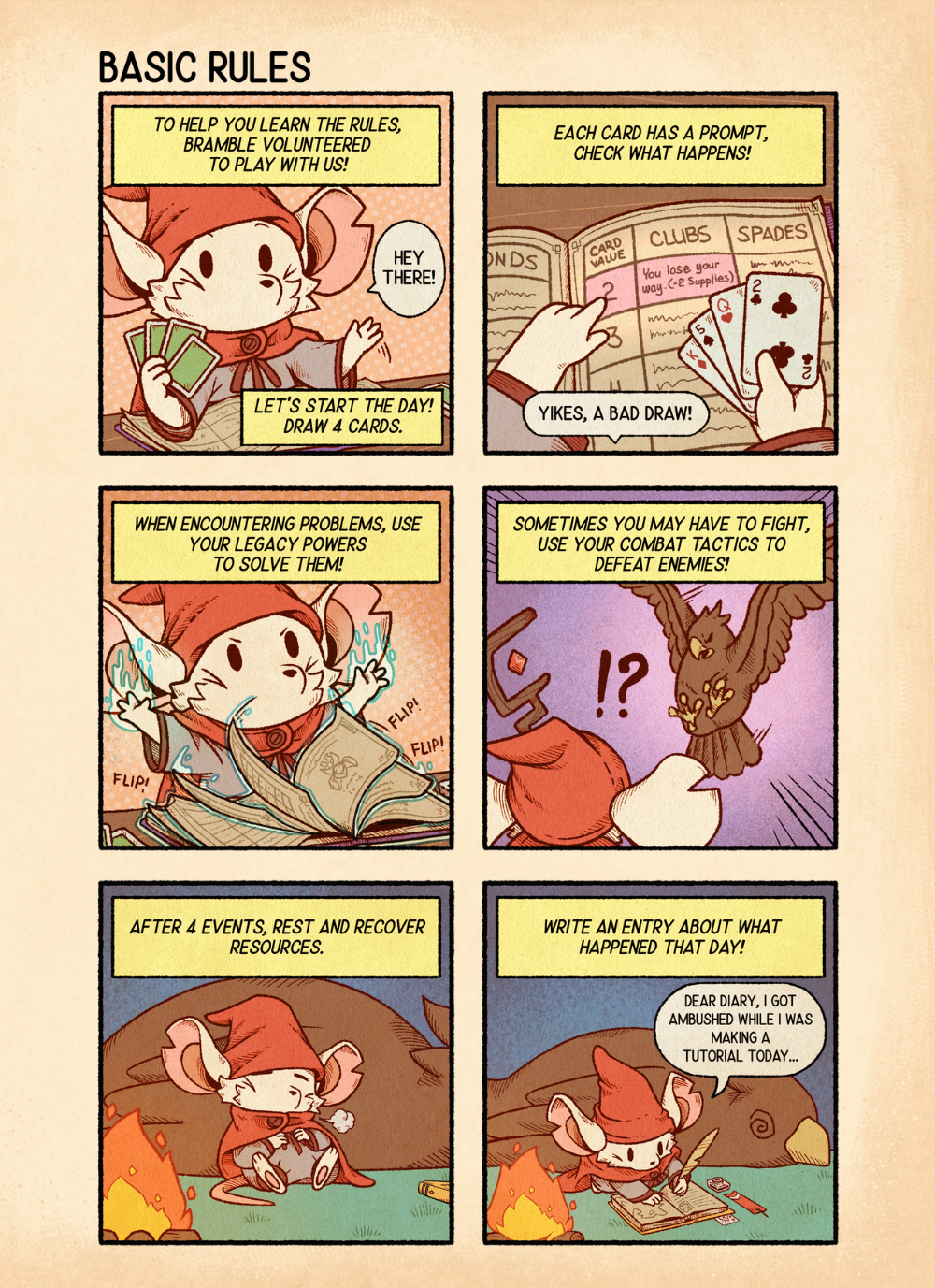 WOW! You’ve blown past 3,500 followers, and as promised, here’s your brand-new "How to Play" comic! Our art team has knocked it out of the park and Bramble was kind enough to lend a paw 🐭💛