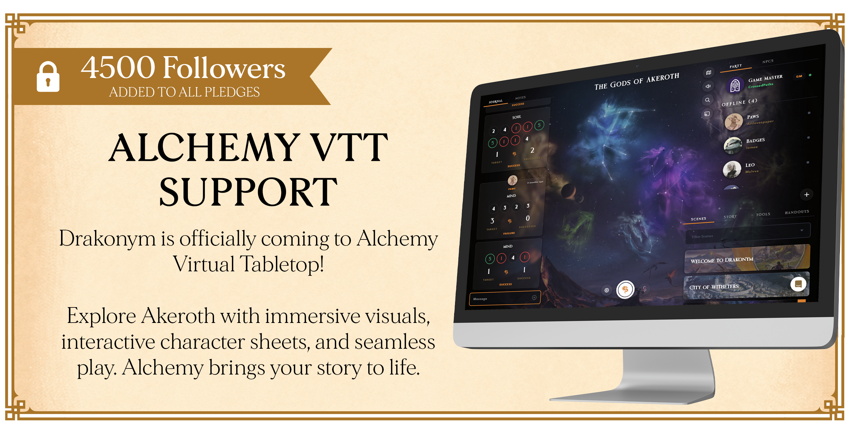 If we reach 4,500 followers, we’ll unlock official support for Alchemy VTT - perfect for remote play! Not following yet?