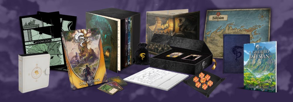 🔓 25k - Dice Pouch (pledges that contain the core dice only): a free pouch bearing the Drakonym sigil to protect your hoard.