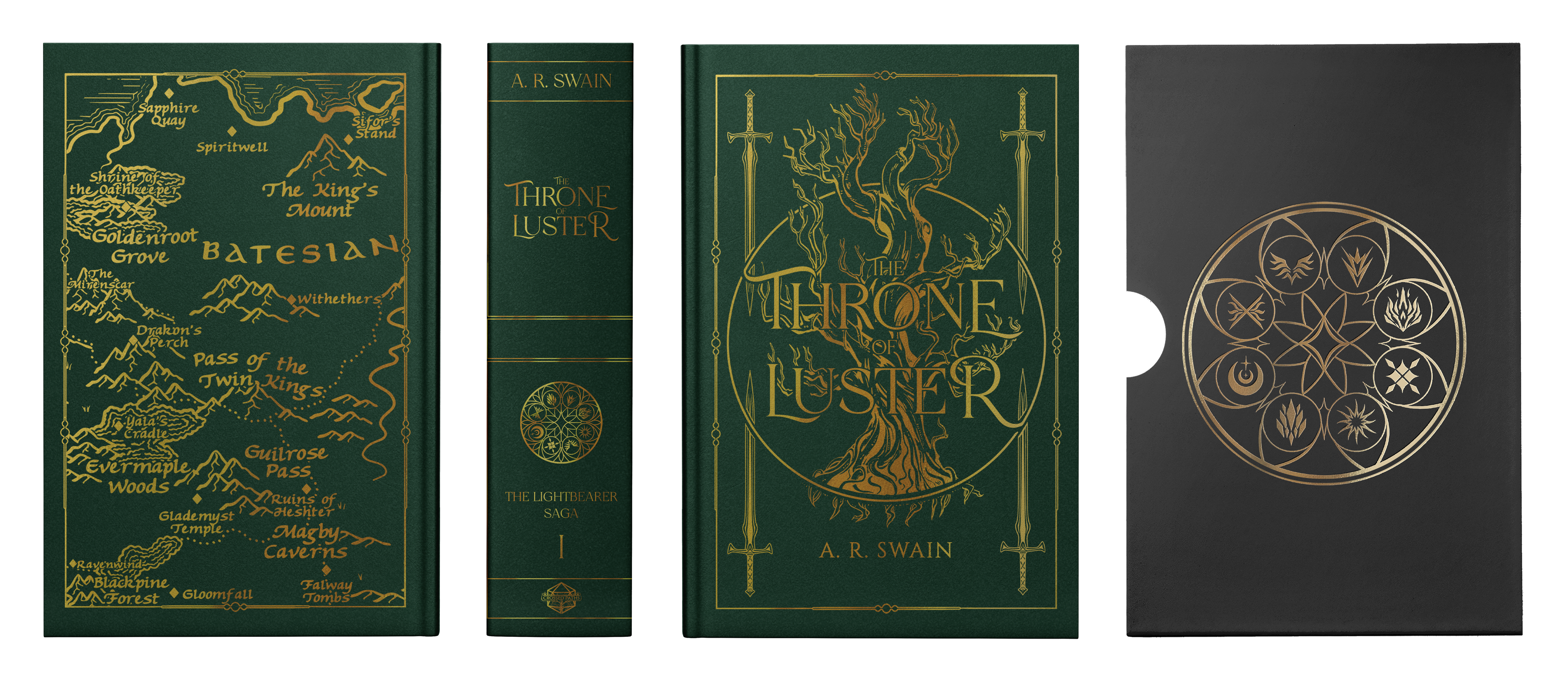 The Limited Edition will also include artwork alongside a signature by A. R. Swain, high-end offset printing,Smyth-sewn binding, an attached ribbon bookmark, and gold gilding of the page edges! Additionally, it has an embossed sleeve with metallic foiling!