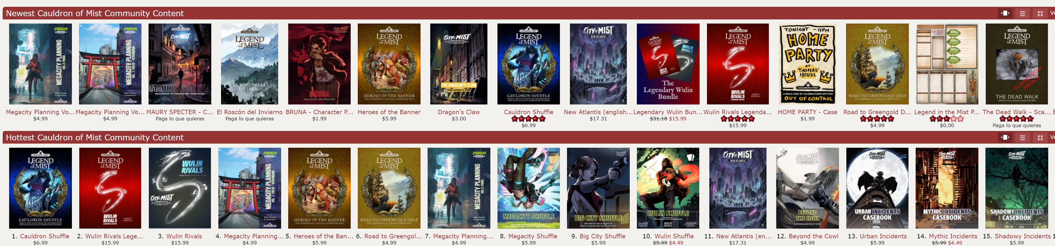 Antes, este proyecto se llamaba City of Mist Garage y podías encontrarlo en DriveThruRPG: un espacio donde la comunidad podía crear, compartir y comercializar sus propias creaciones de City of Mist. Cauldron of Mist es la evolución lógica de ese proyecto, que así queda completo.