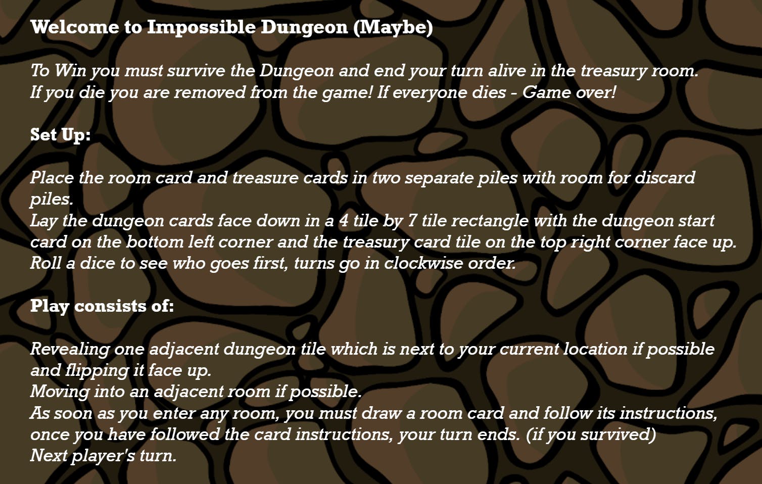 Remember, Impossible dungeon has over 250 cards to ensure a different journey every game.