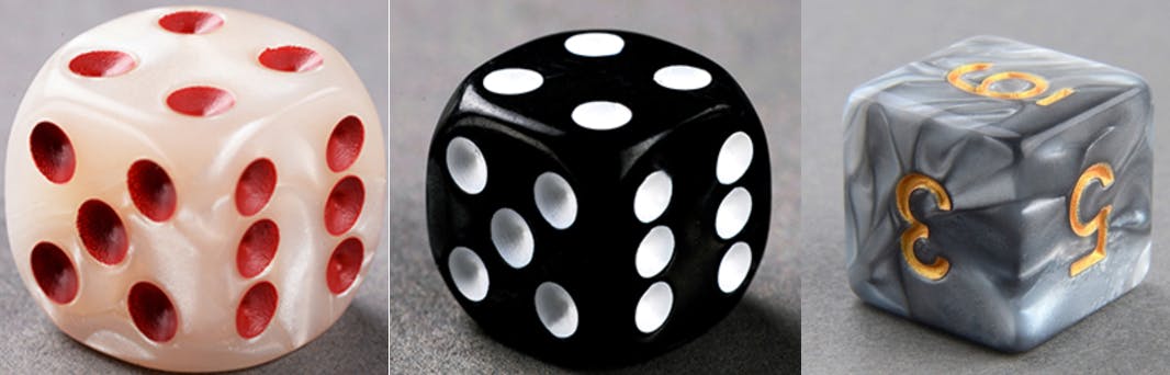 Left and Middle Dice are the original dice choice - Right Dice is the replacement based on aesthetics.