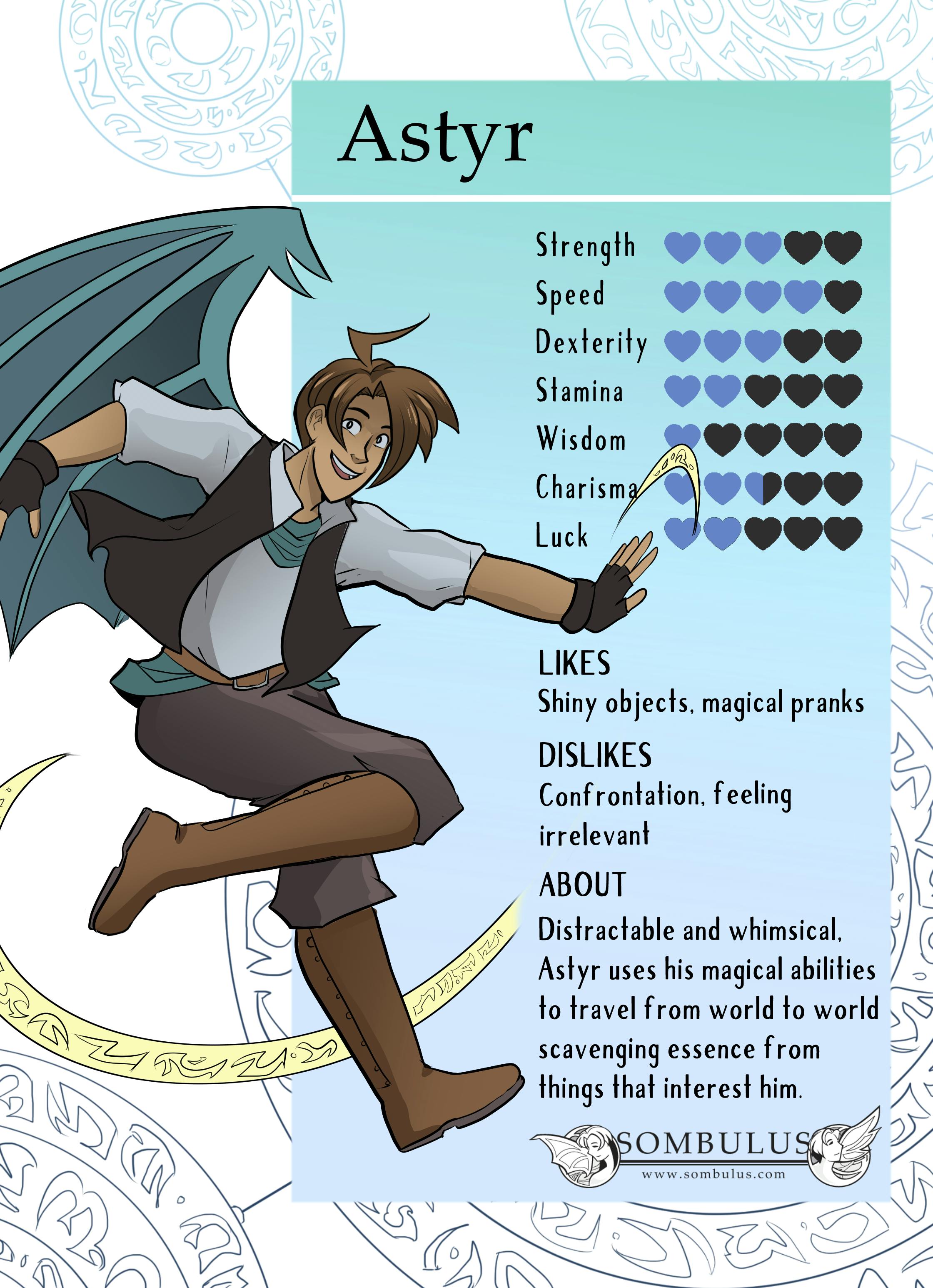 Here's a little peek at some stat cards for our main chaotic trio of our story!