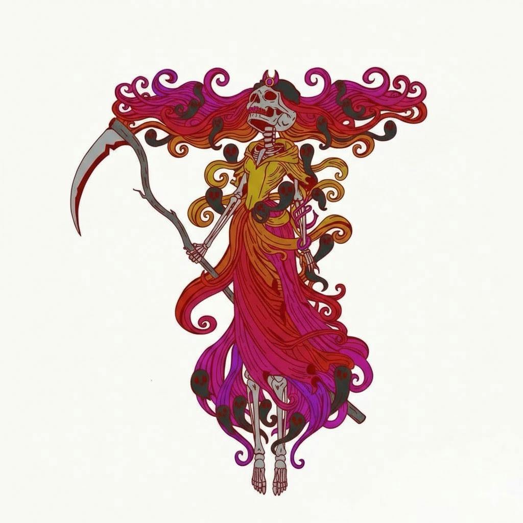 She is not the cold end that mortals fear, but the soft, hum of the silence that follows. One day, you too will become one of the many glowing faces peeking out from her silhouette. This is her eternal work: she gathers the fragmented, the lonely, and the unfinished, weaving them into her own form.